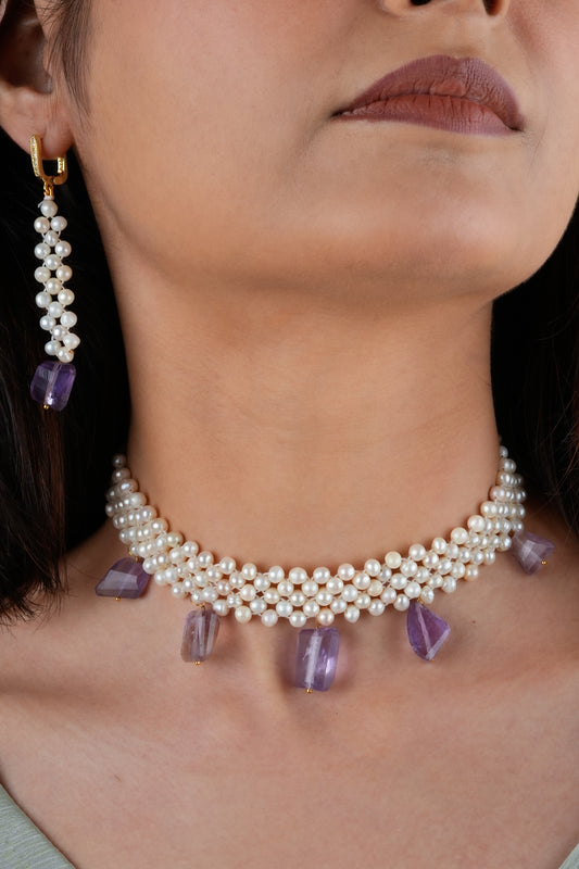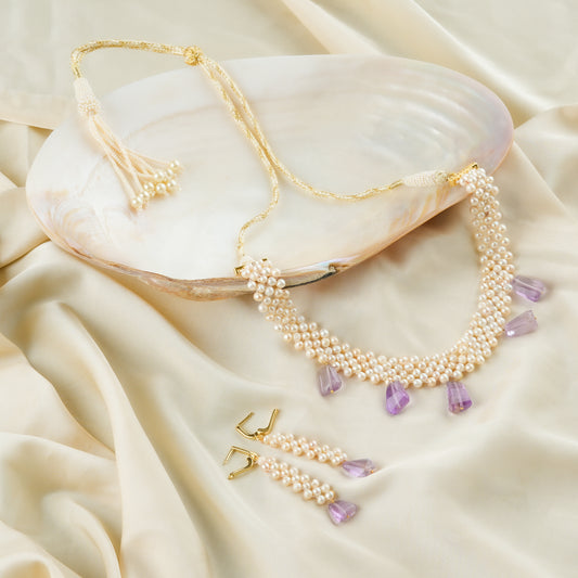 Freshwater Pearl And Amethyst Chatai Necklace Set