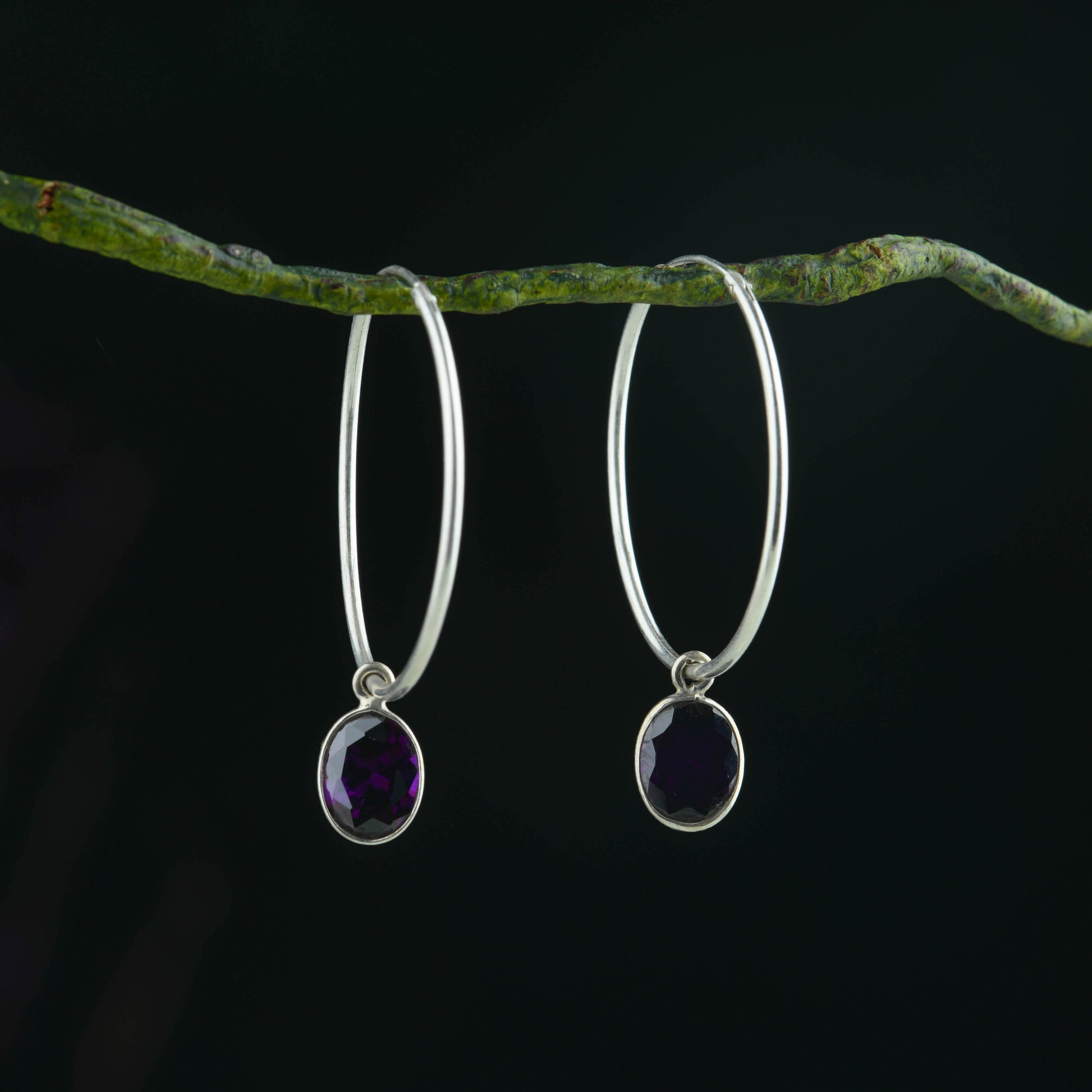 Amethyst Drops In Silver Rings