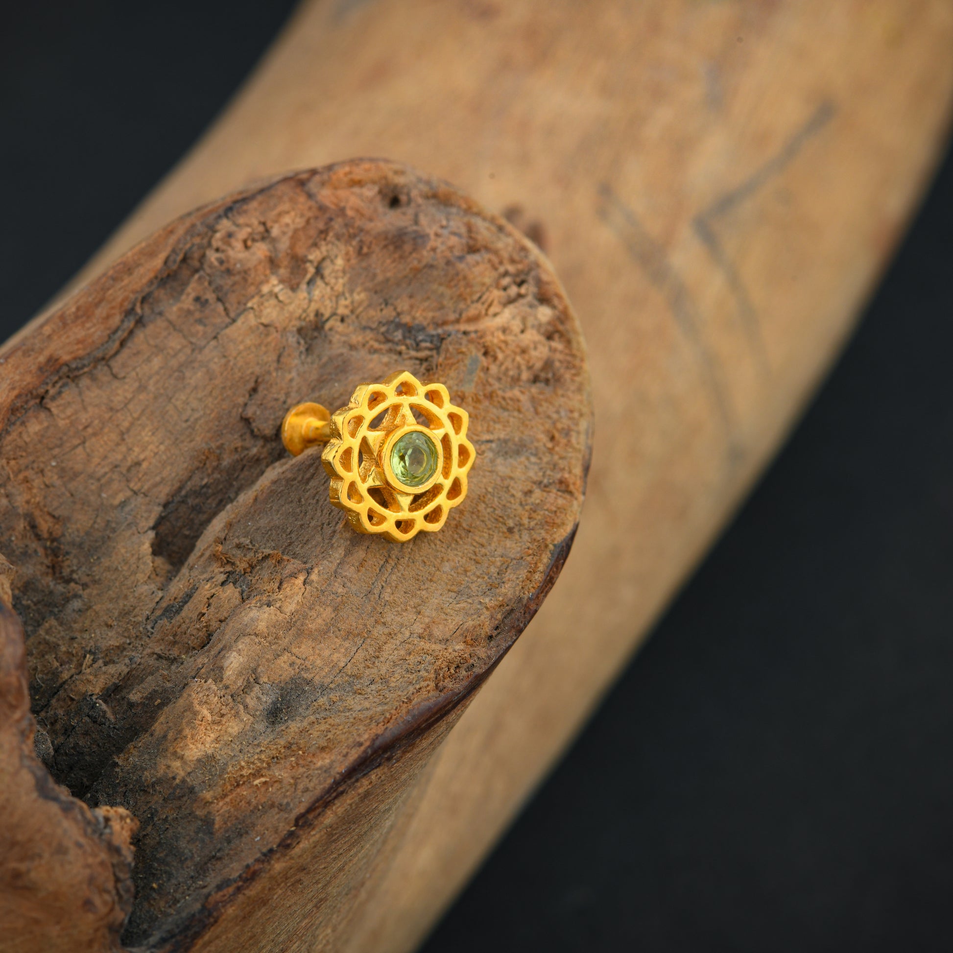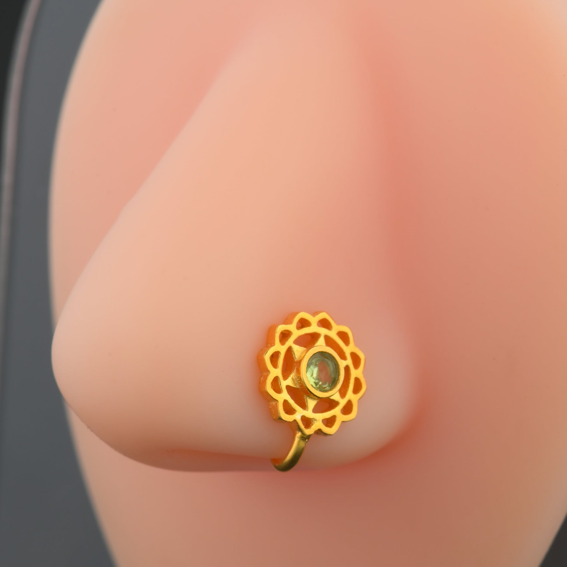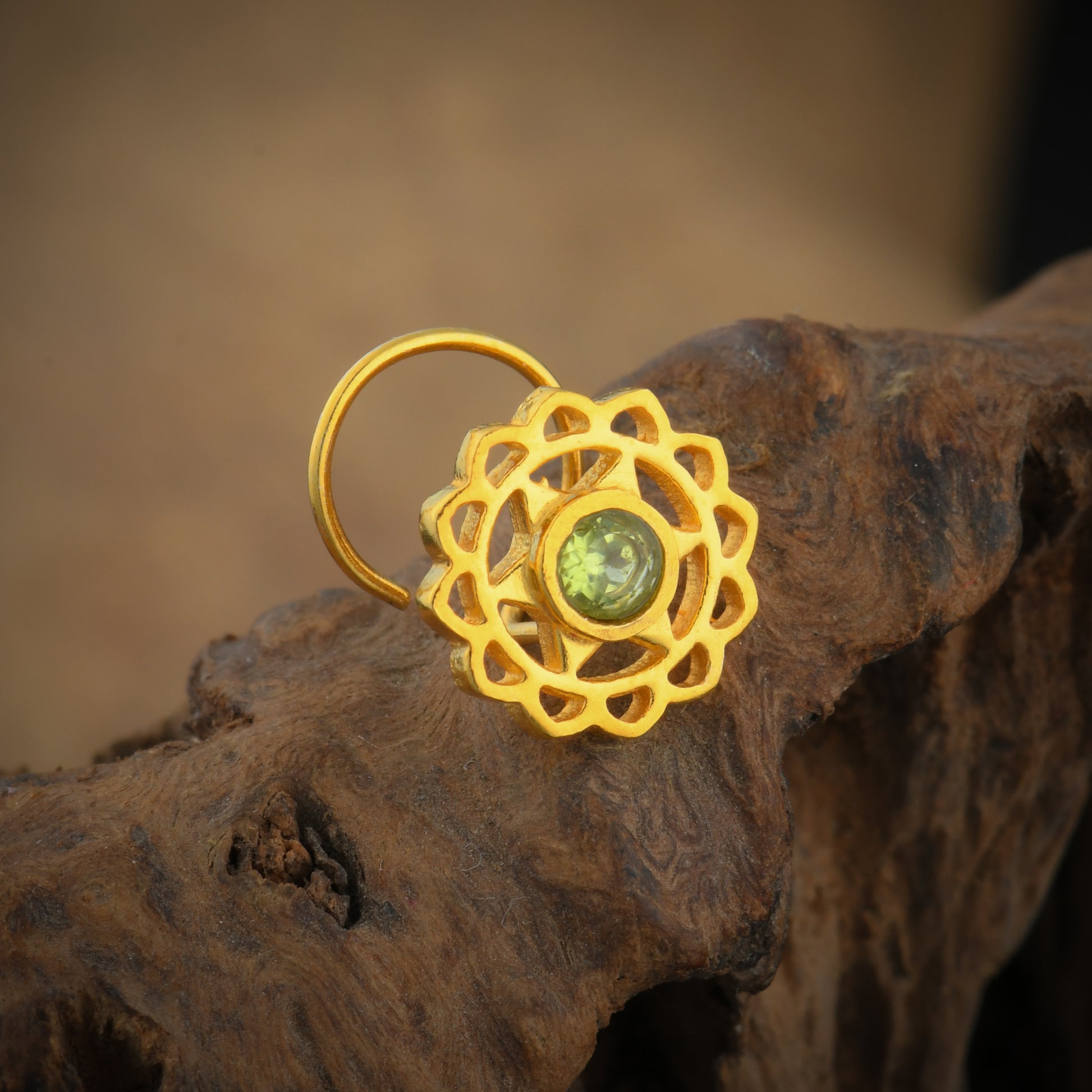 Anahat(Heart) Chakra Gold Plated Silver Nose Pin