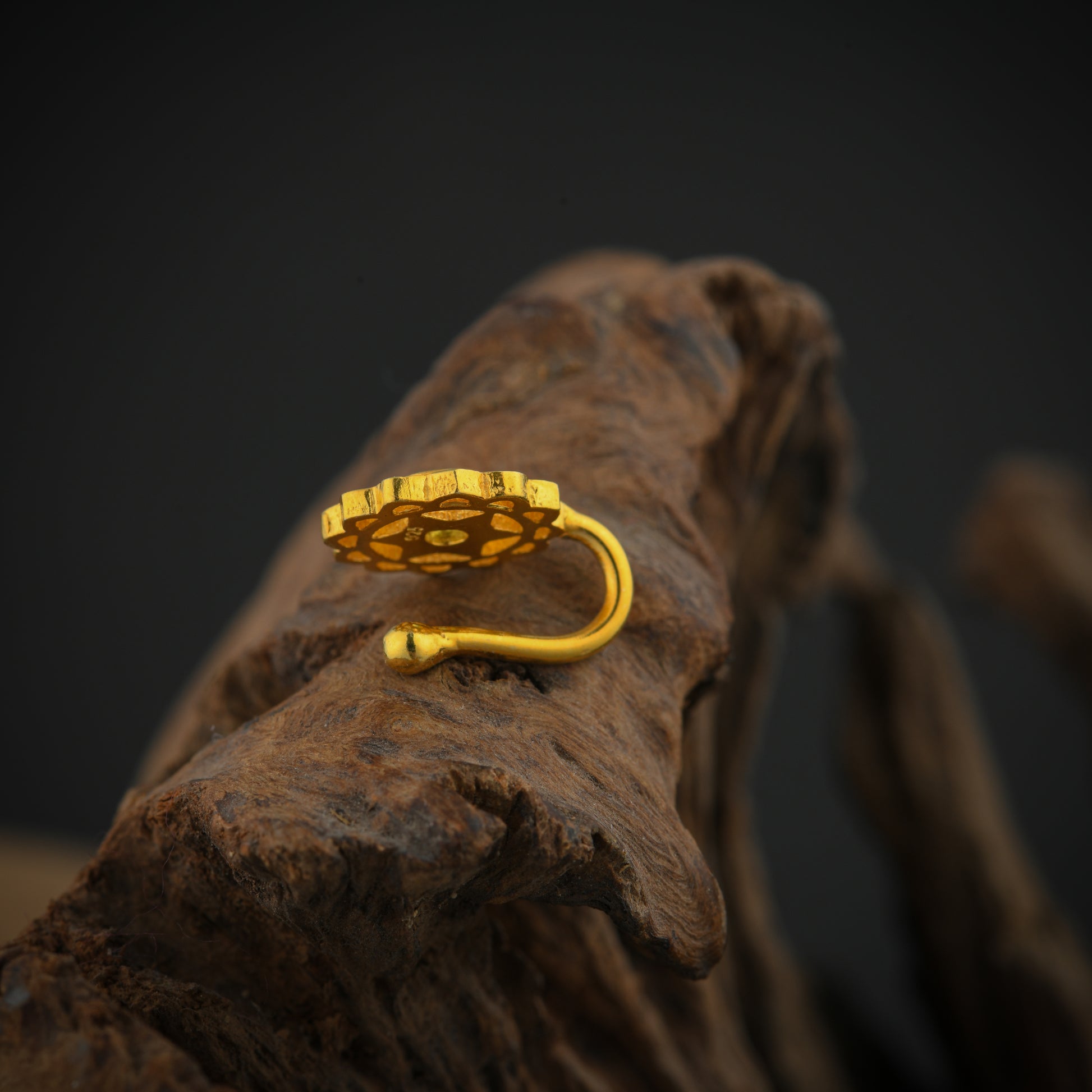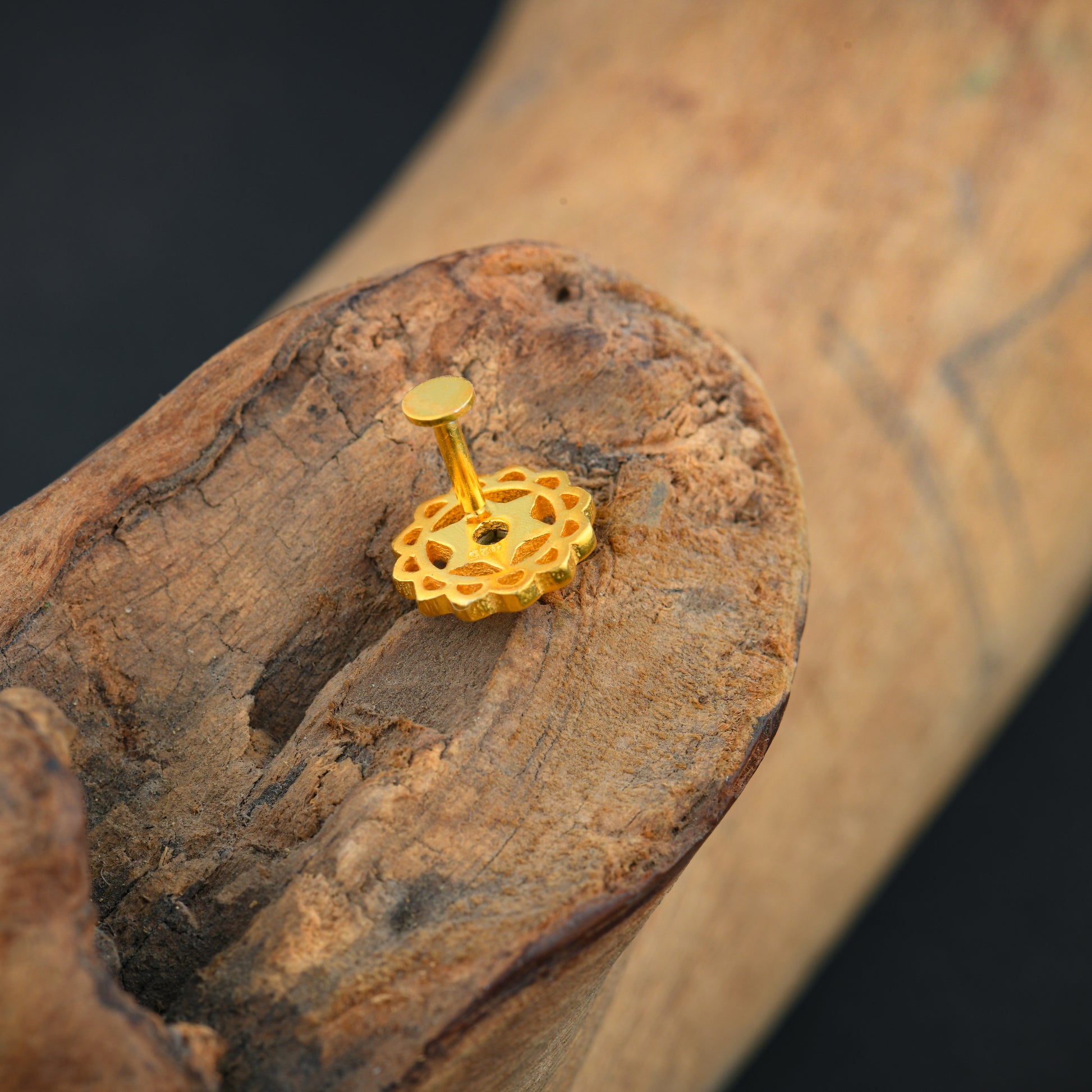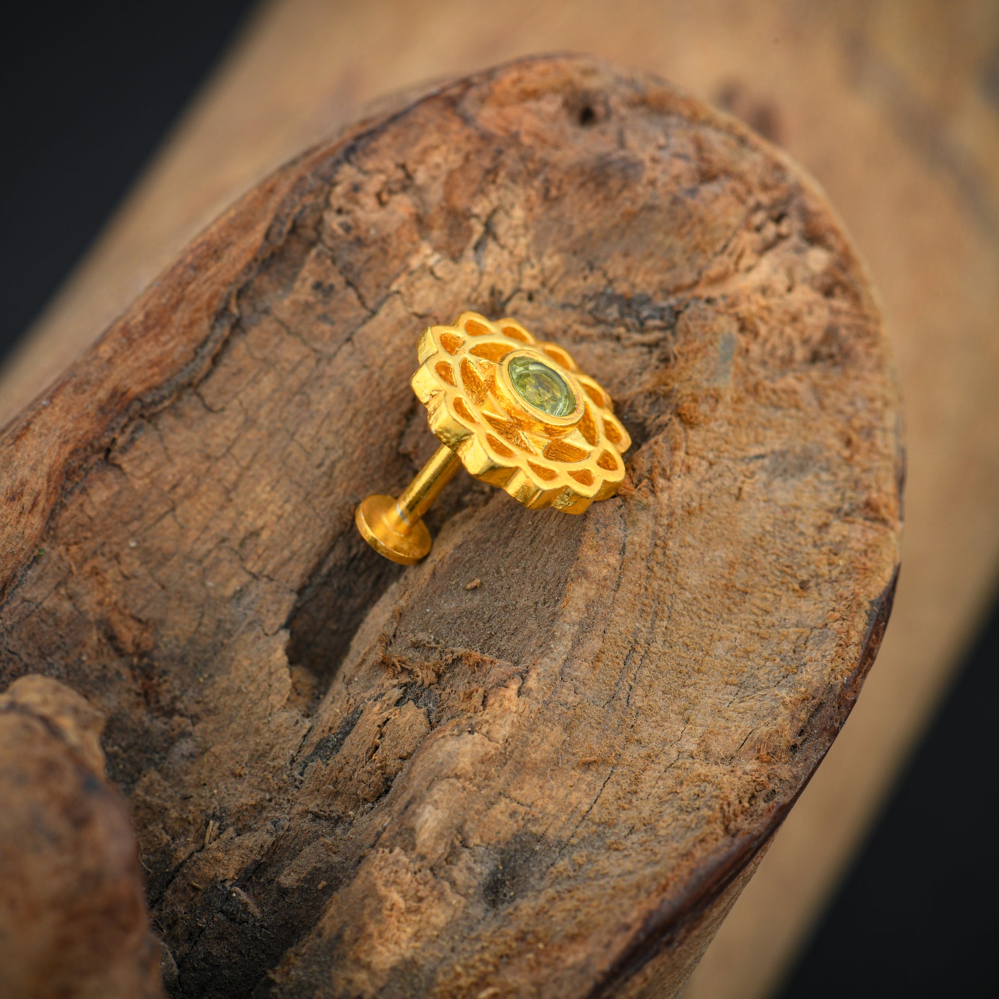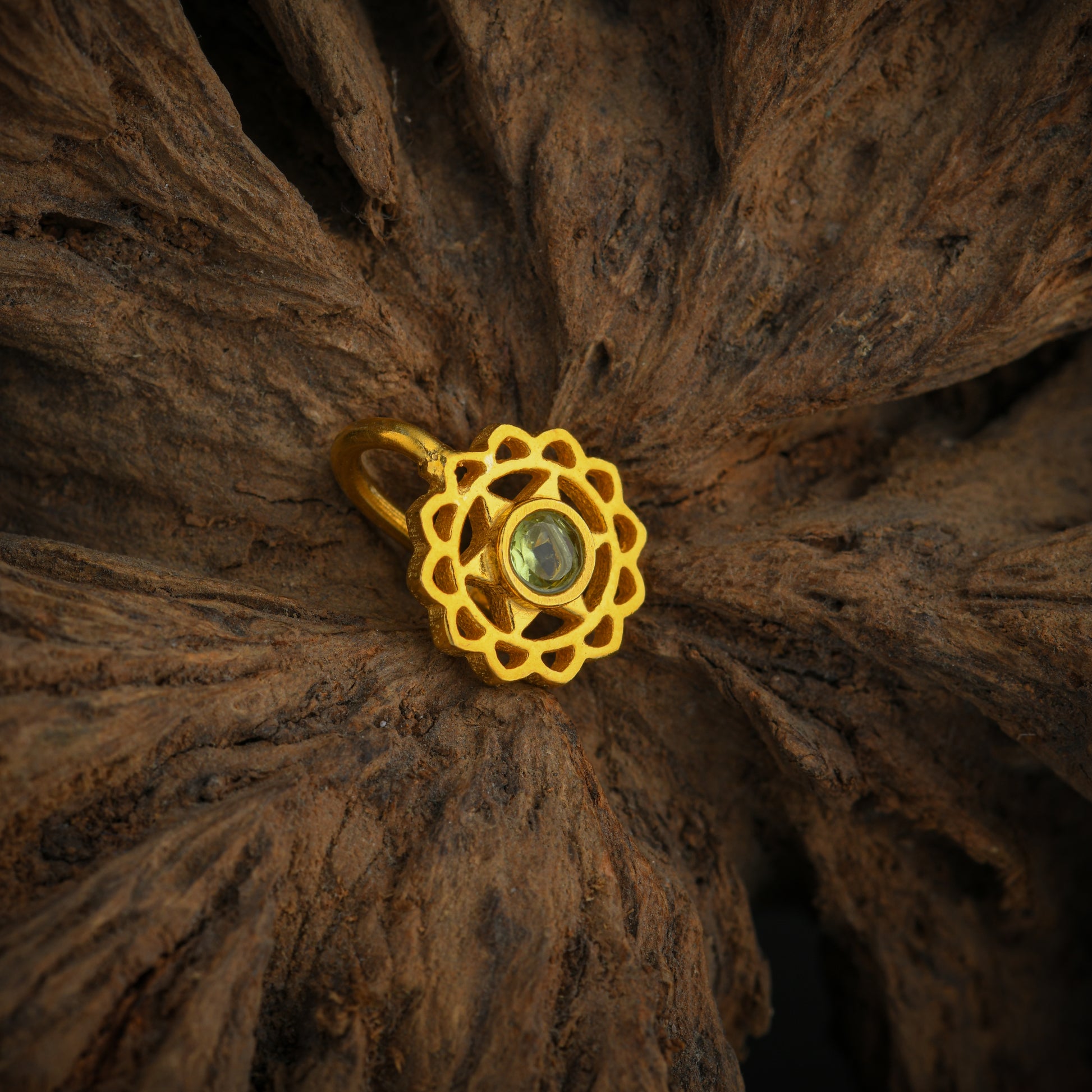 Anahat(Heart) Chakra Gold Plated Silver Nose Pin