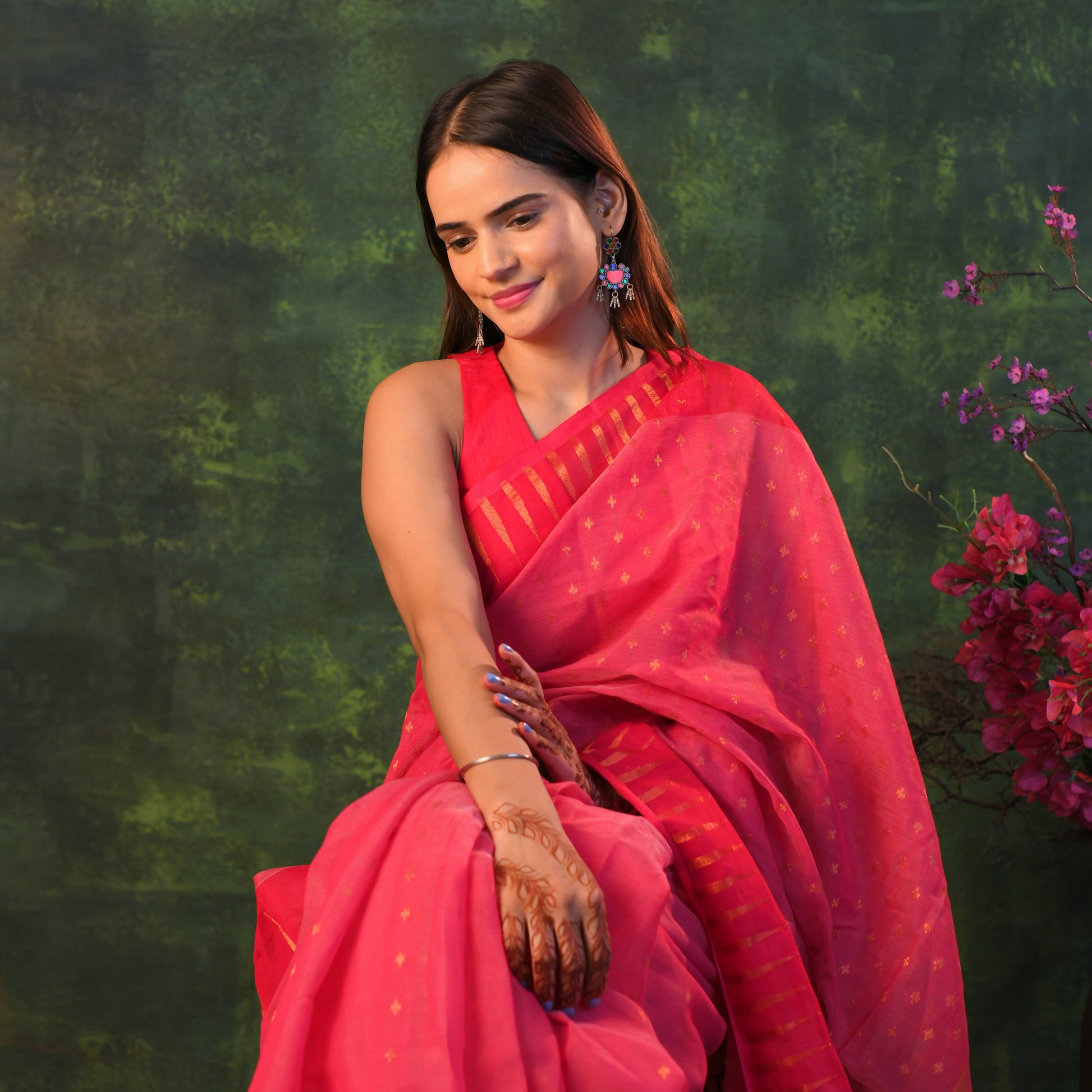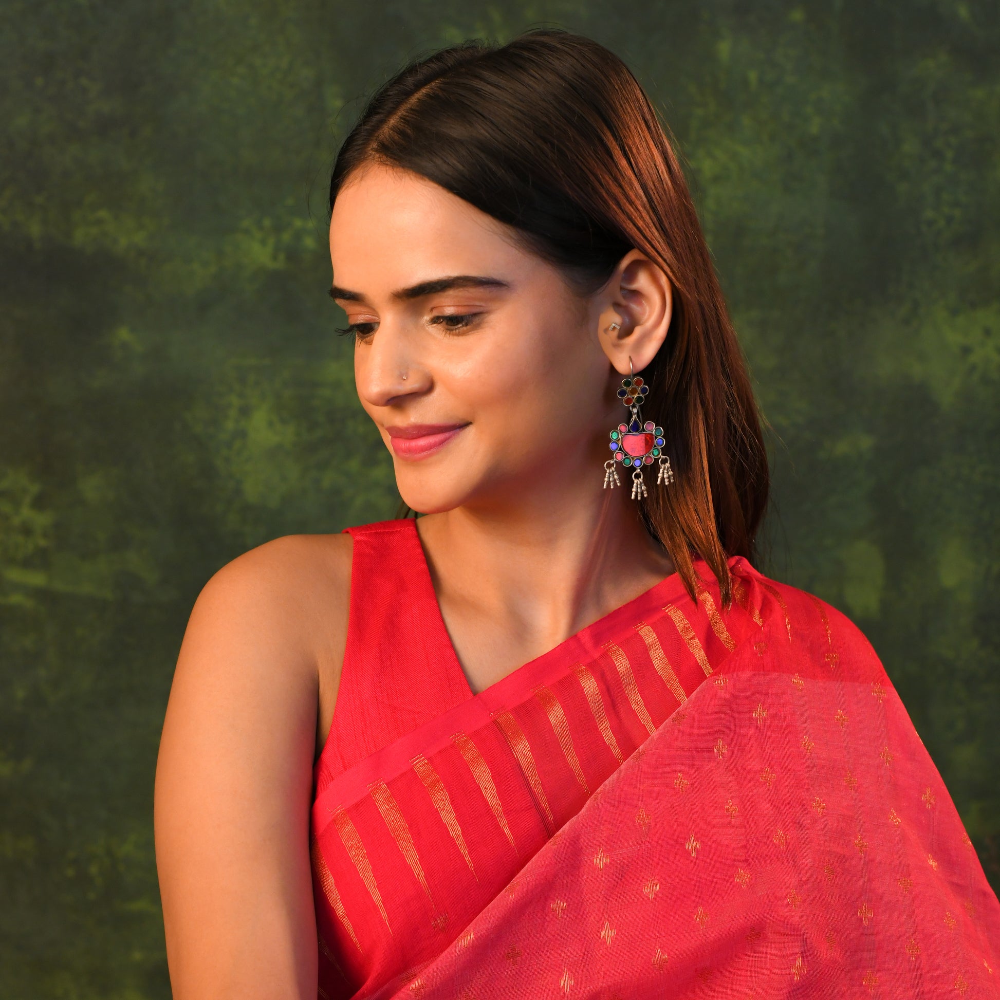 Adorn yourself in the rich, celebratory color of a grand festival. These magnificent dangle earrings are a cascade of vibrant ruby red, capturing the essence of joyous opulence and timeless elegance.