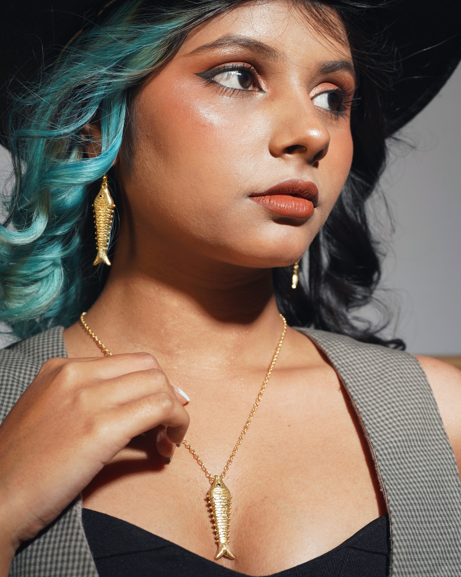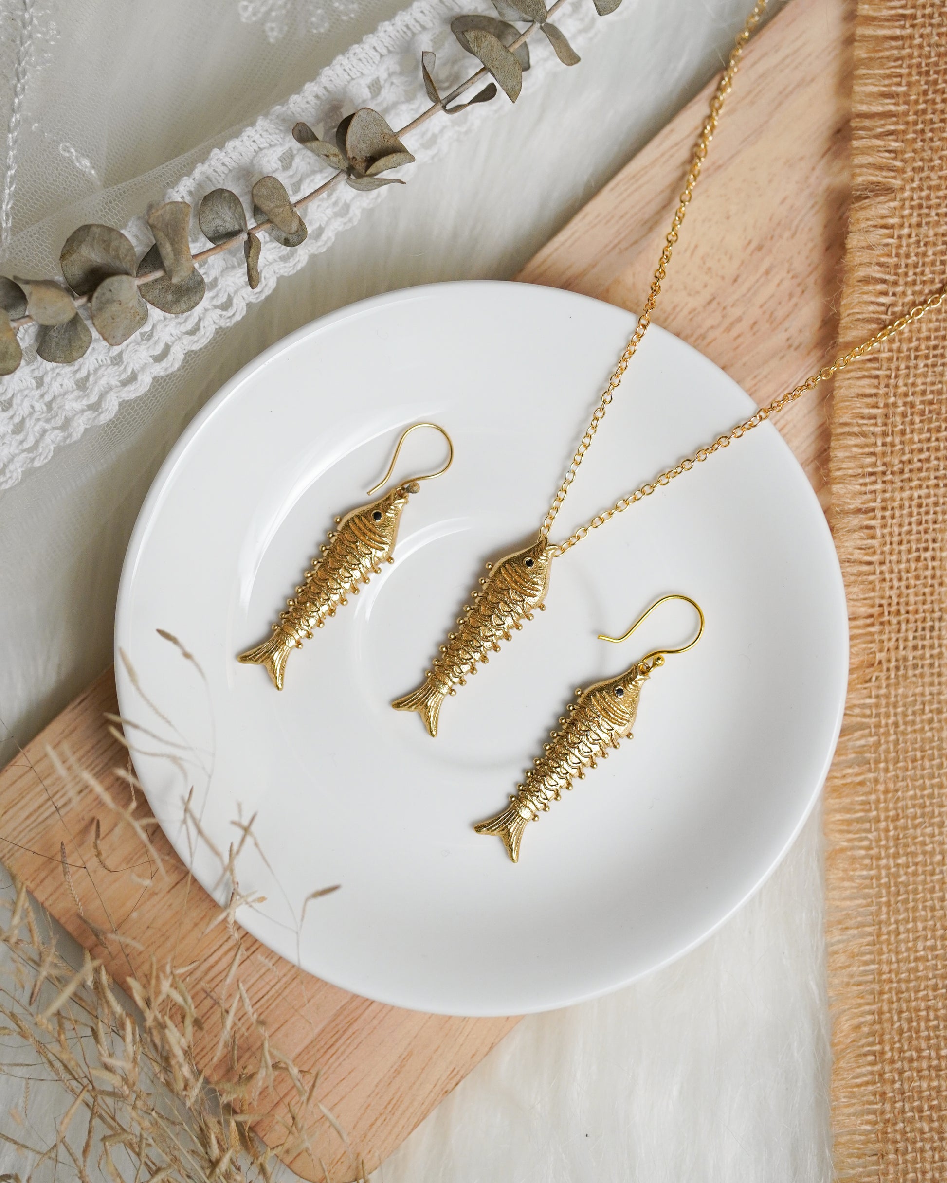 Bring a touch of glam to your style with this Aqua Charm Set! Its unique gold plated pieces sparkle in the light, adding a special touch of elegance to your outfit. Make a statement with this beautiful set and express your personality.