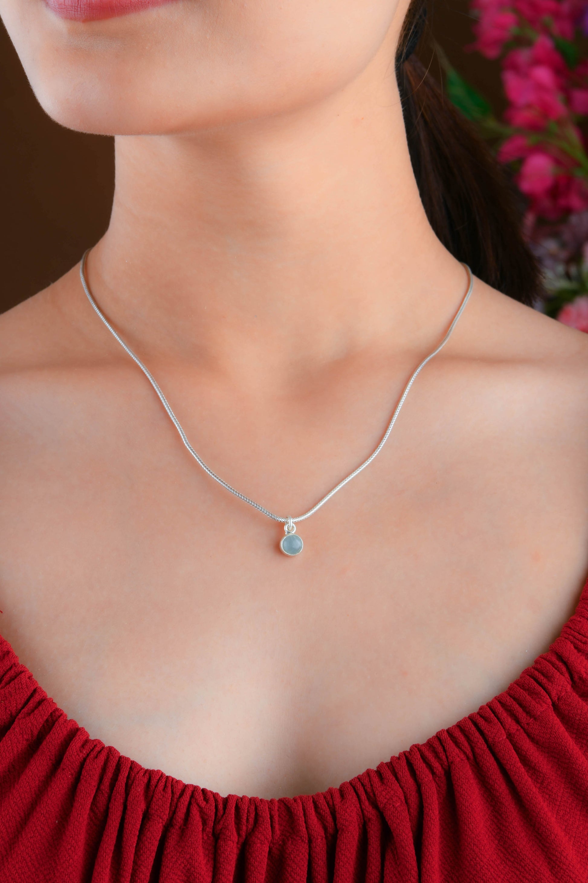 Chain is included in this price.Wearing this stone may reduce anger and stress in your life bringing in new positive energies and self healing. It is also related as a stone of throat chakra. Known to open up communication and cleansing emotional issues from past, Aquamarine is a powerful stone. This is a traditional March Birthstone.