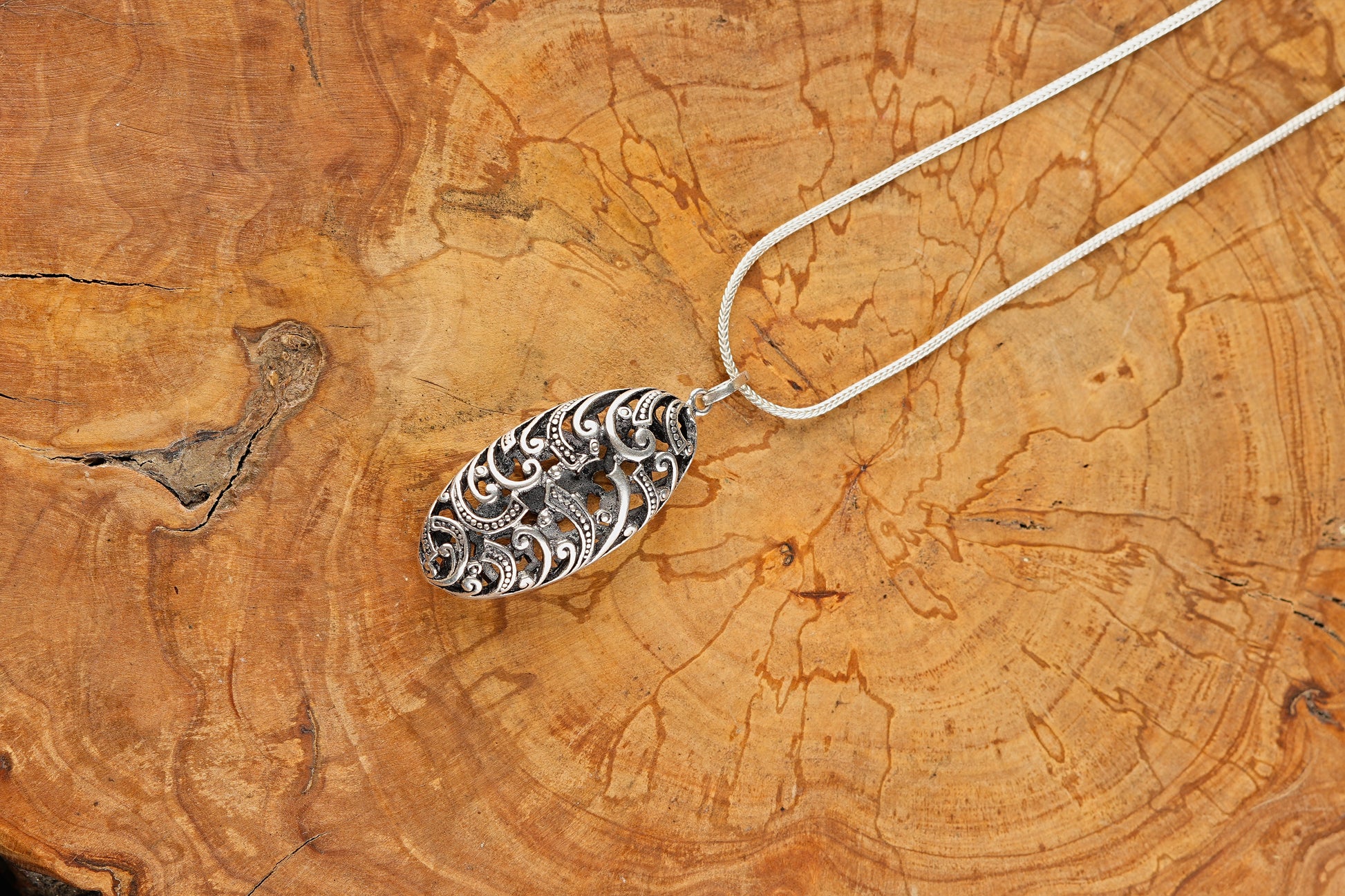 This collection features wooden jewellery along with silver. The combination of the two is very unique and unconventional. We have used 92.5 silver and semi-precious stones only. This is one of the most difficult techniques of handmade jewellery, as small pieces of silver are stuck on wood. We have ensured that all pieces are well-lacquered to make them water-resistant and durable. All the pieces are handcrafted and hence some variations may occur.