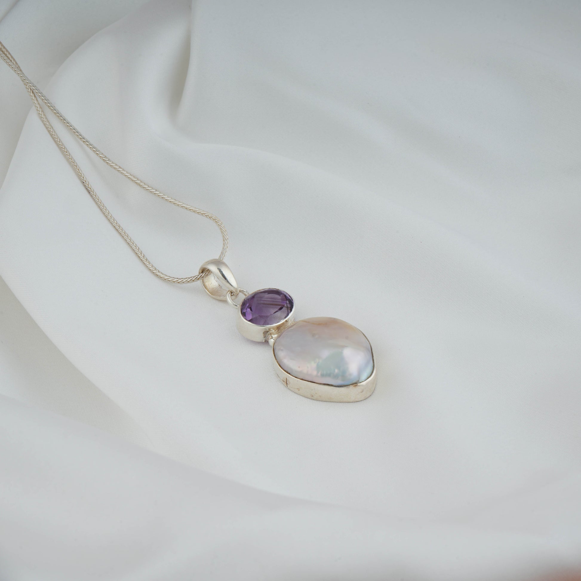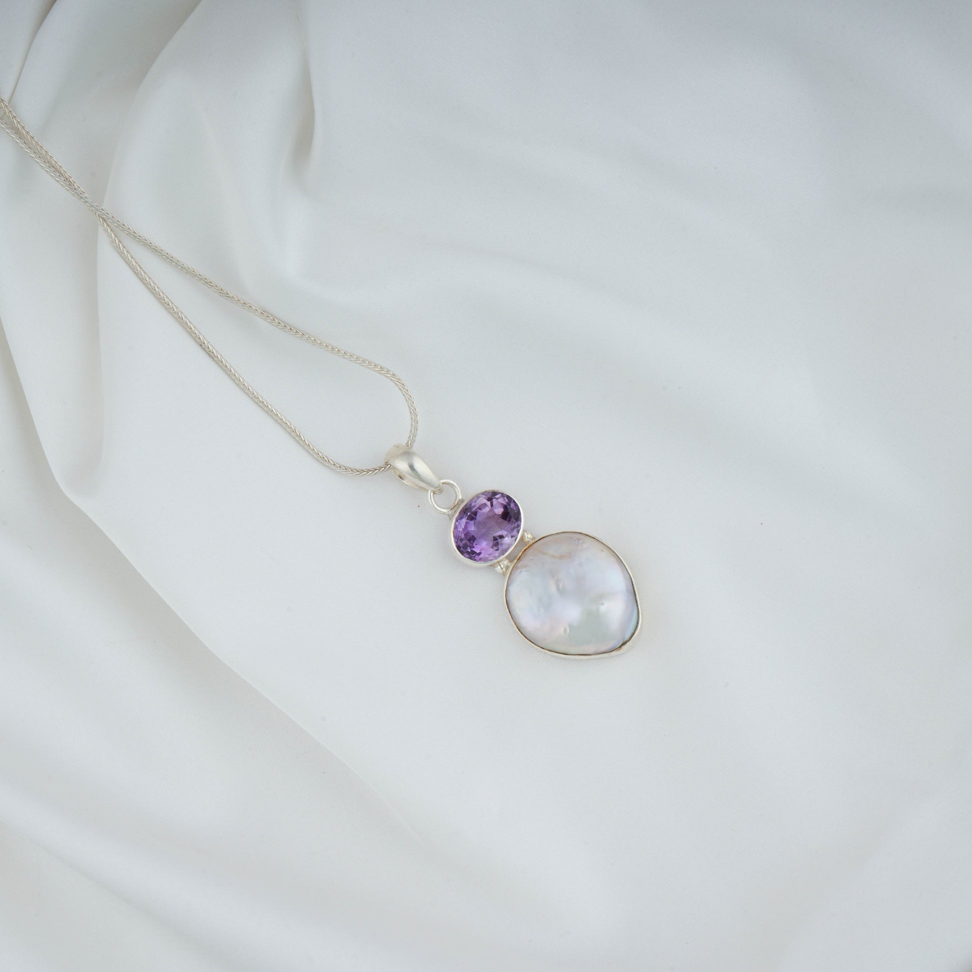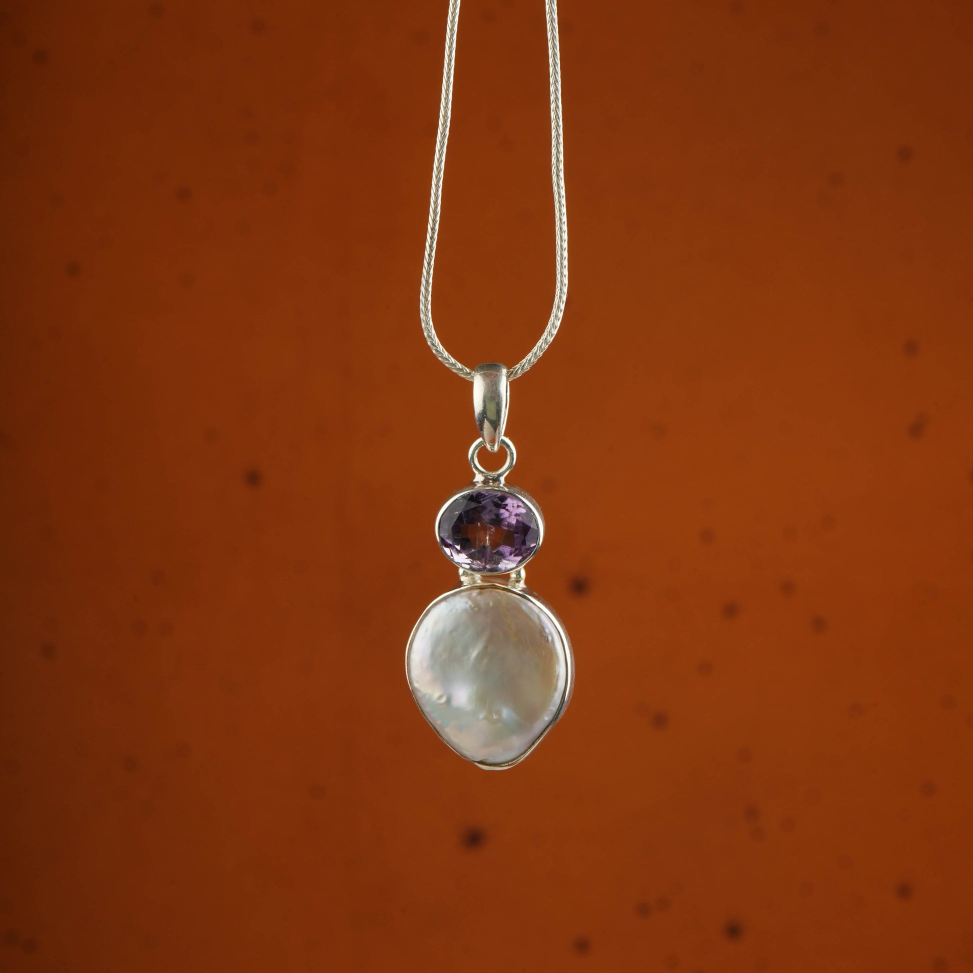 Material: 92.5 silver, Freshwater Baroque Pearl, Amethyst Stone