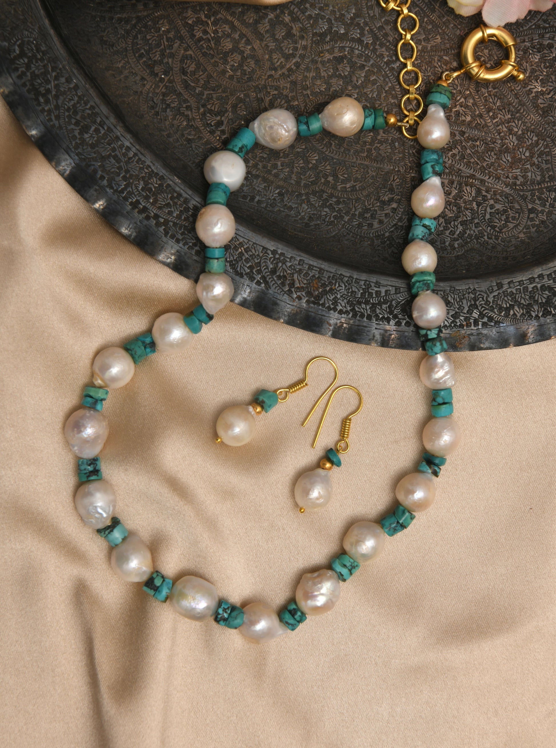 Baroque Pearl-Turquoise Classic Necklace Set
