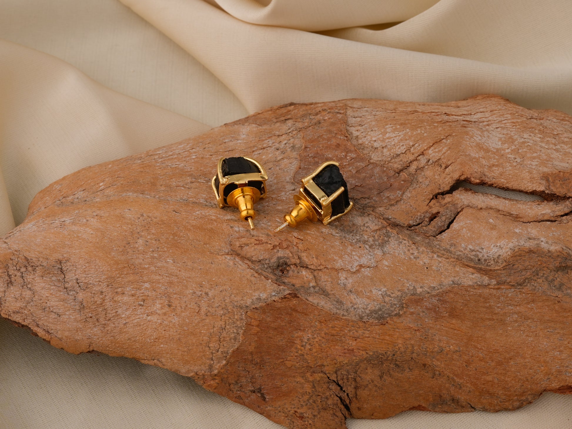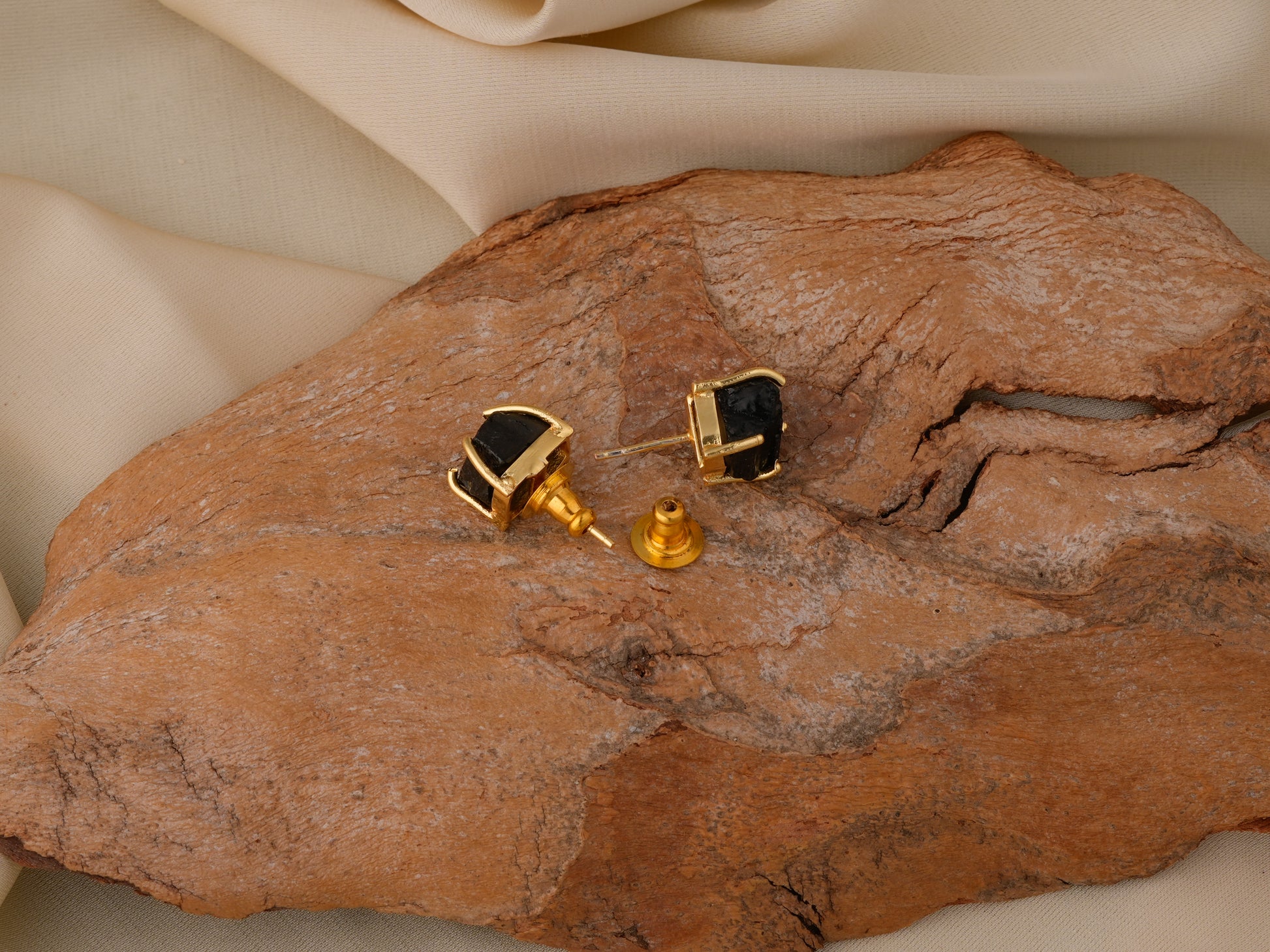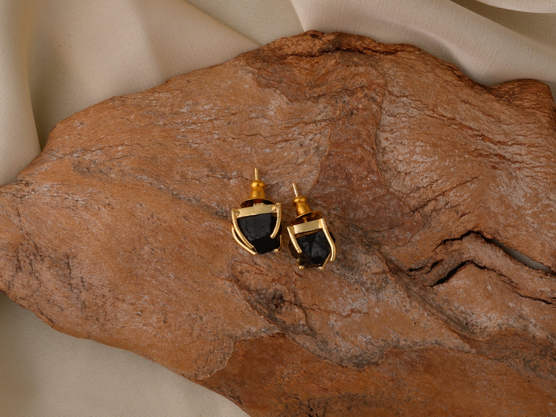 Natural Black Onyx Studded In Gold Plated brass
