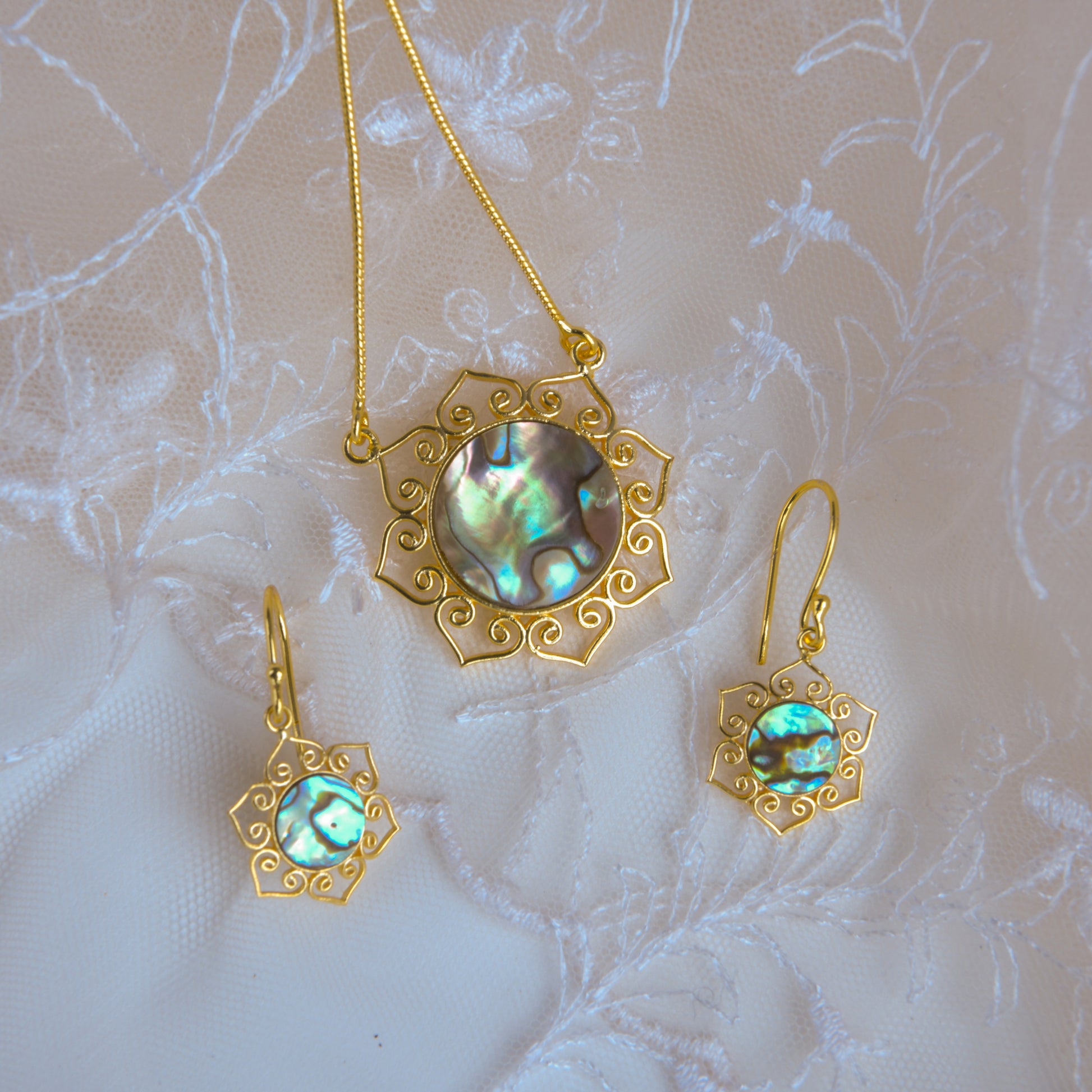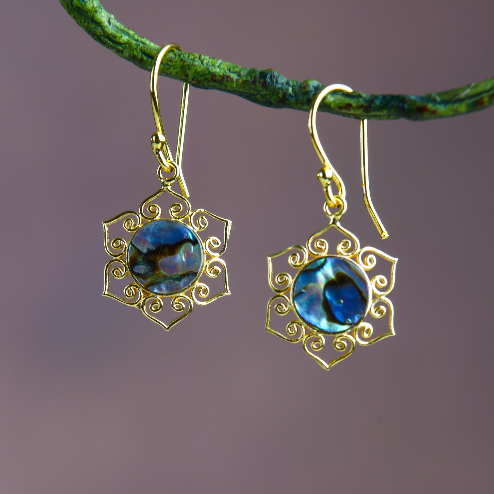 Natural Abalone shell on 22kt gold-plated brass alloy
