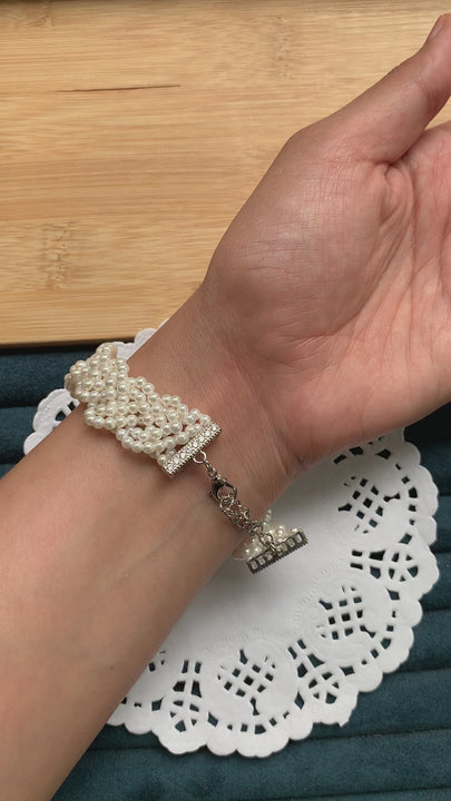 This stunning silver-plated bracelet adds an elegant touch of class to any outfit. The beautiful braided design of pearls creates a timeless, classic look that is sure to turn heads. Elevate your look with this timeless accessory today!