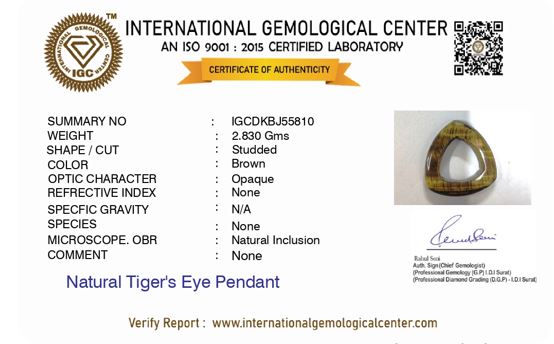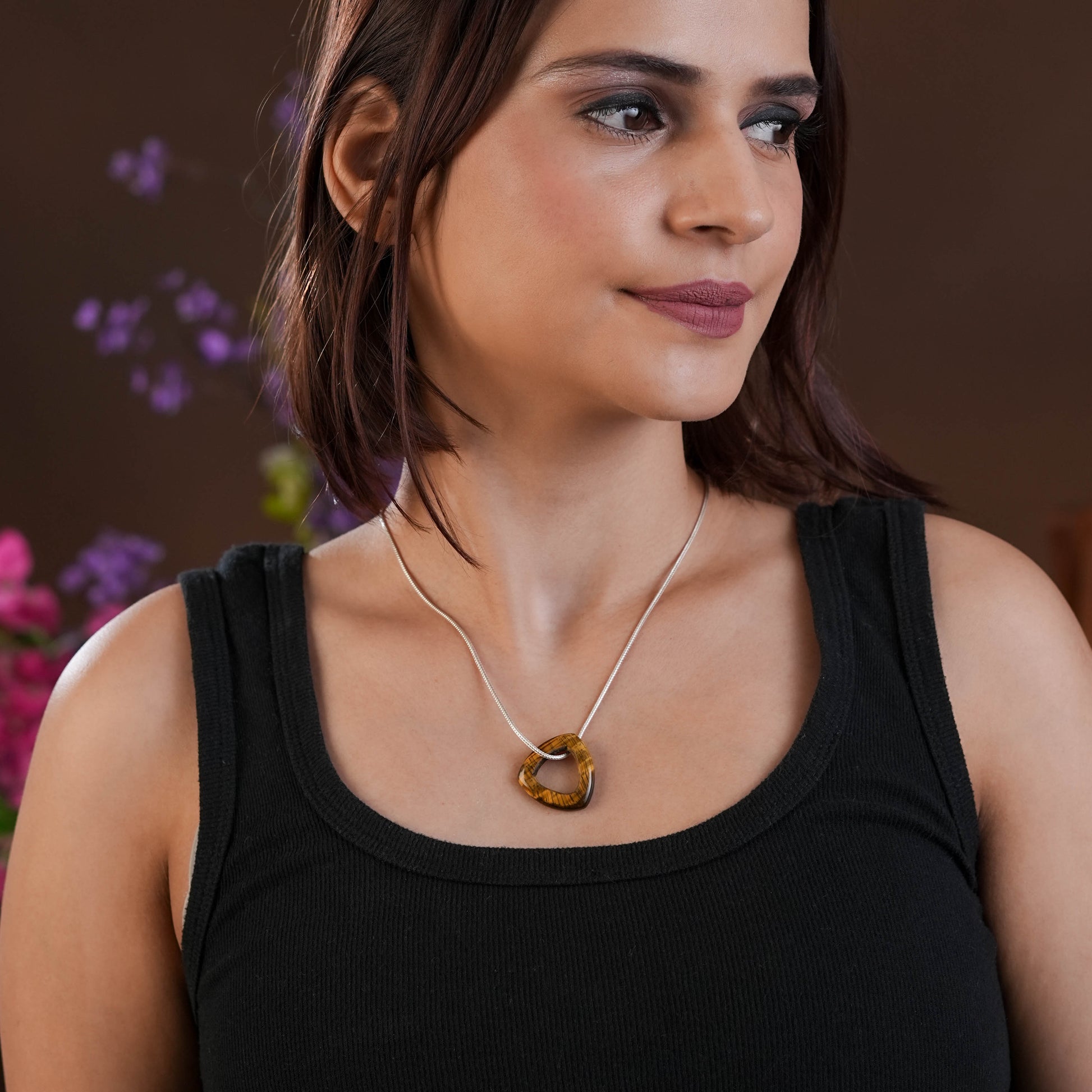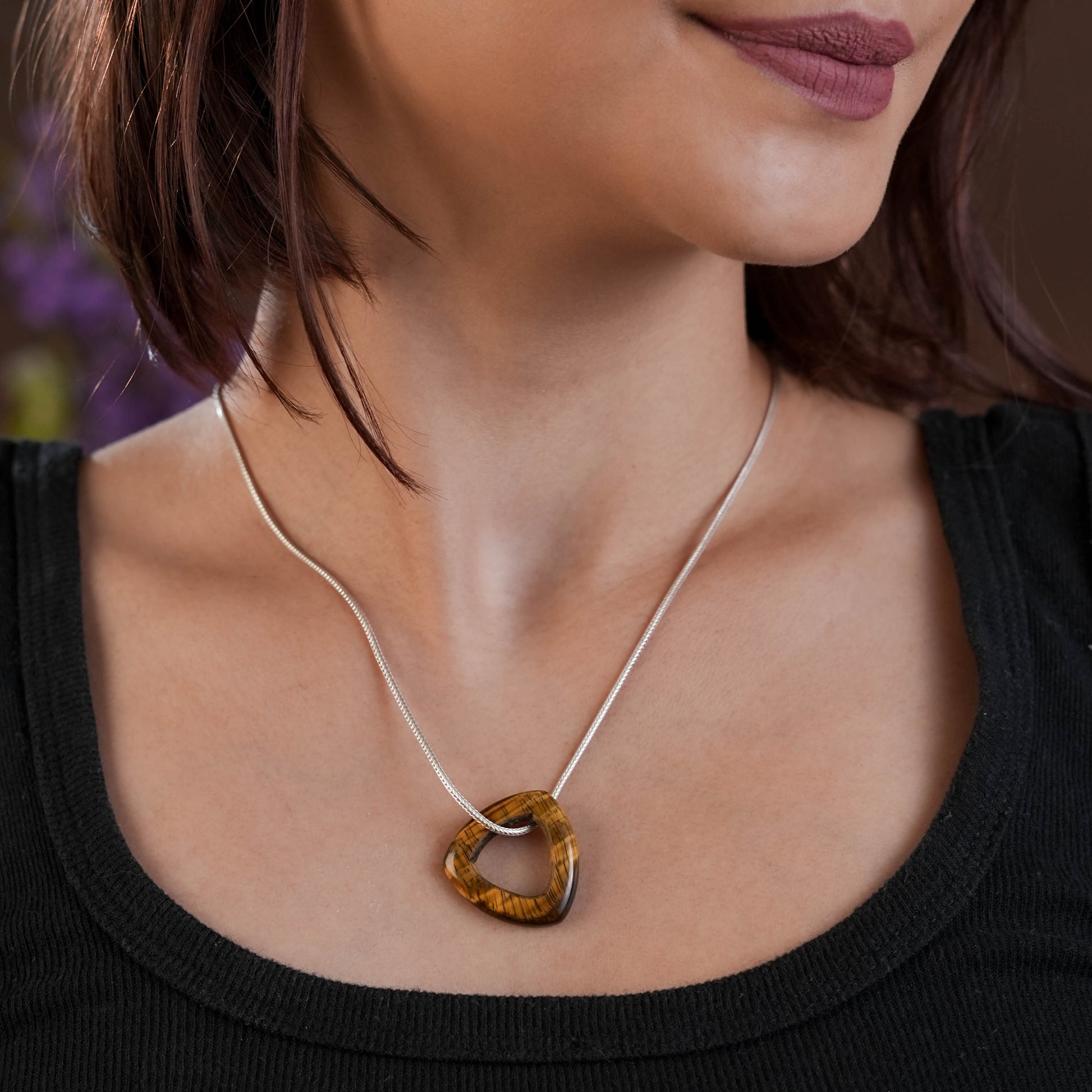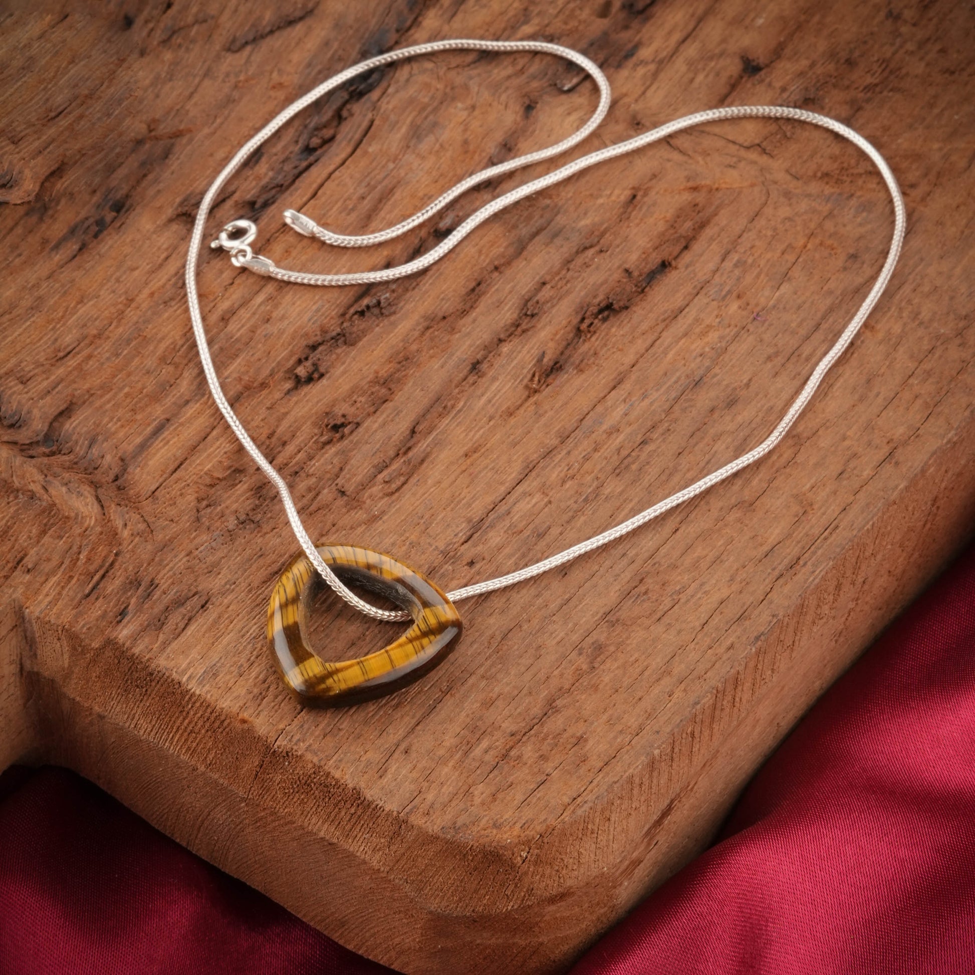 Carved Natural Tiger Stone Triangle Silver Necklace