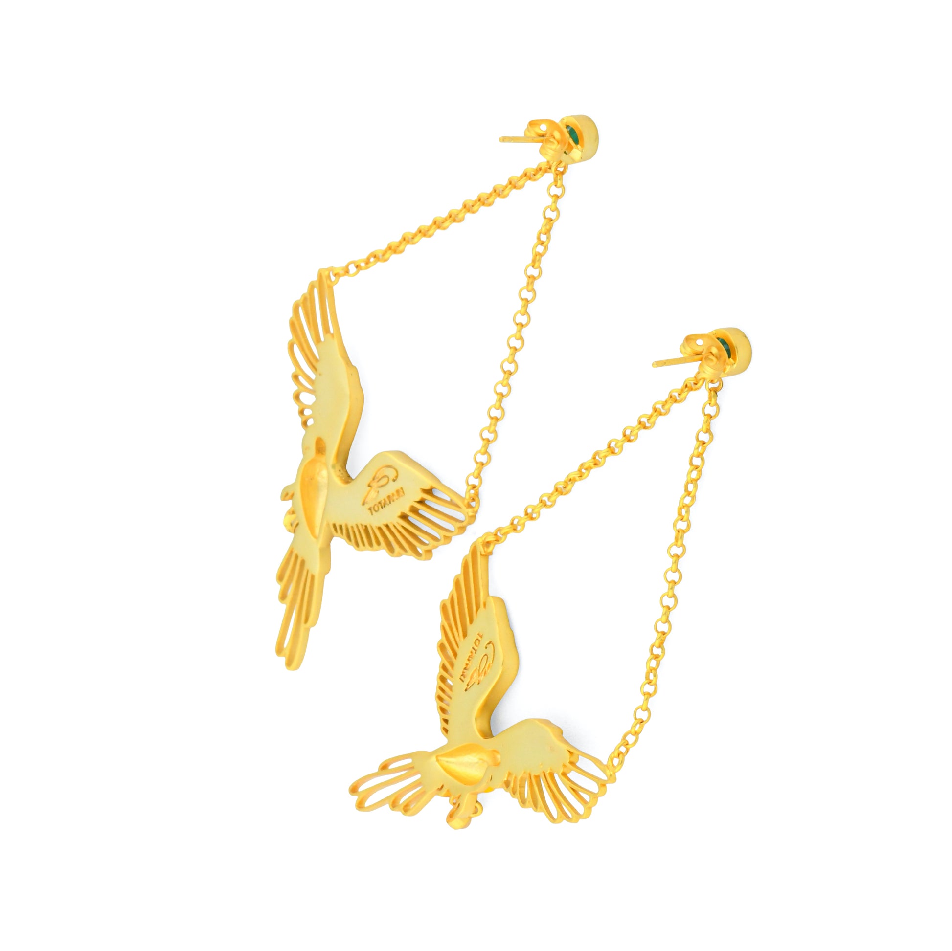 Designed in warm 22 kt gold-plated brass, these danglers make a bold yet elegant statement. Wear them when you want your jewellery to speak of freedom, colour and joy—or pair them with the matching necklace to complete your own forest-inspired story.