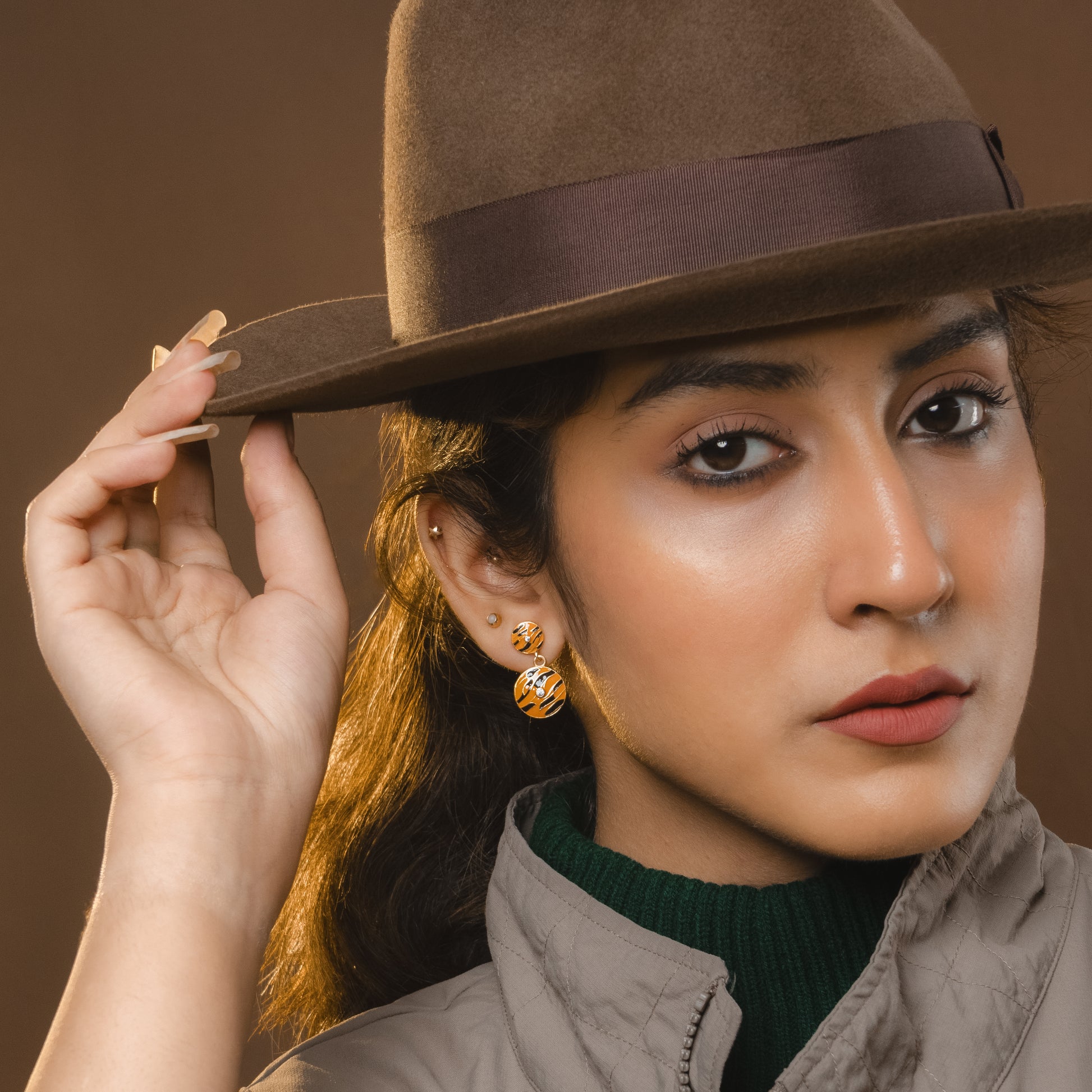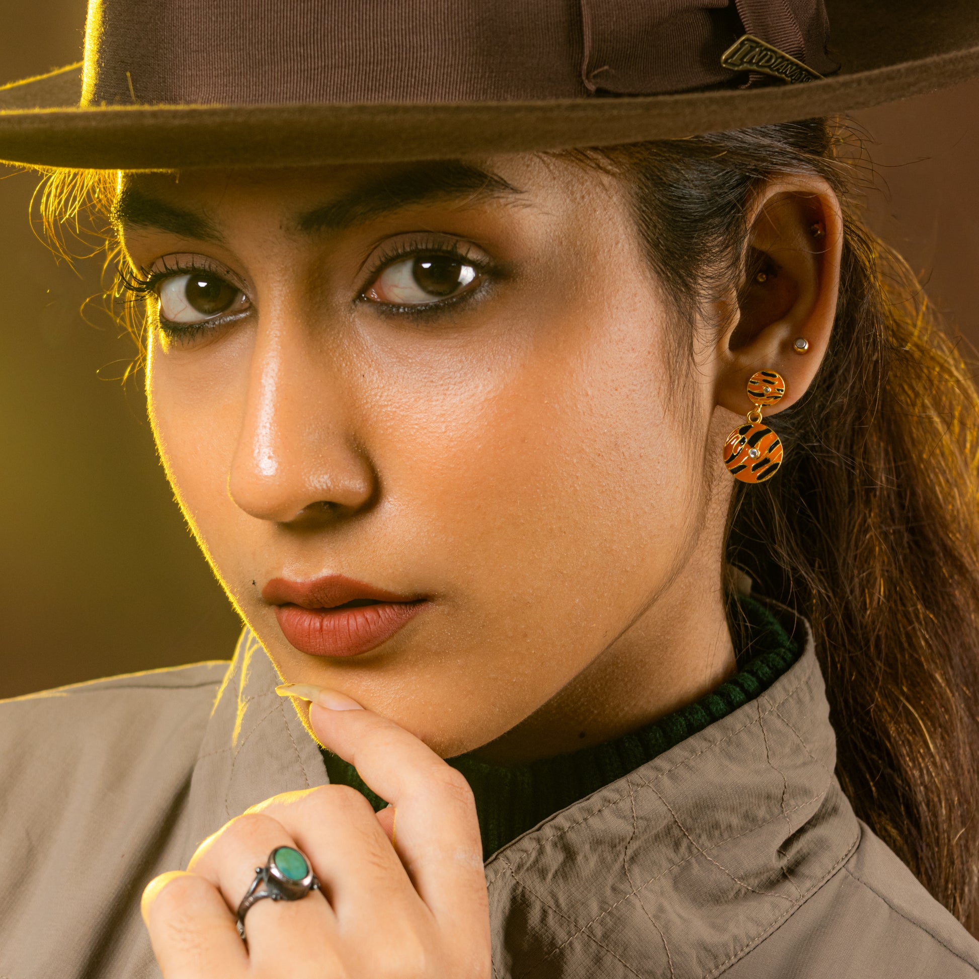 Inspired by the soul of Corbett National Park, these earrings honour the tiger—the most majestic and powerful creature of the Indian wilderness. Resting at the apex of the food chain, the tiger does more than rule the forest; it safeguards the balance of every life form within it.