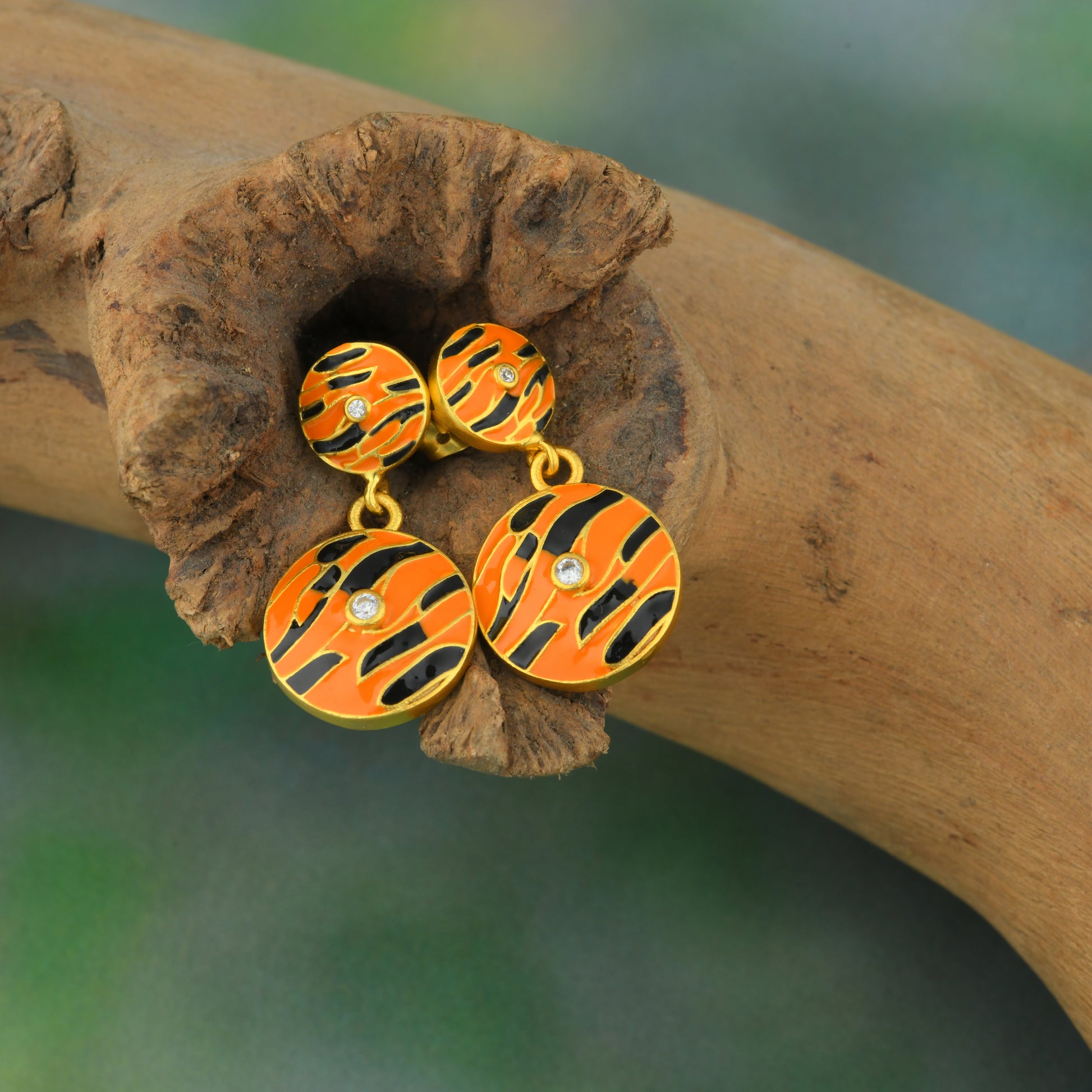 Handcrafted Tiger Enamel: Each stripe is individually detailed, giving every earring its own unique character.
