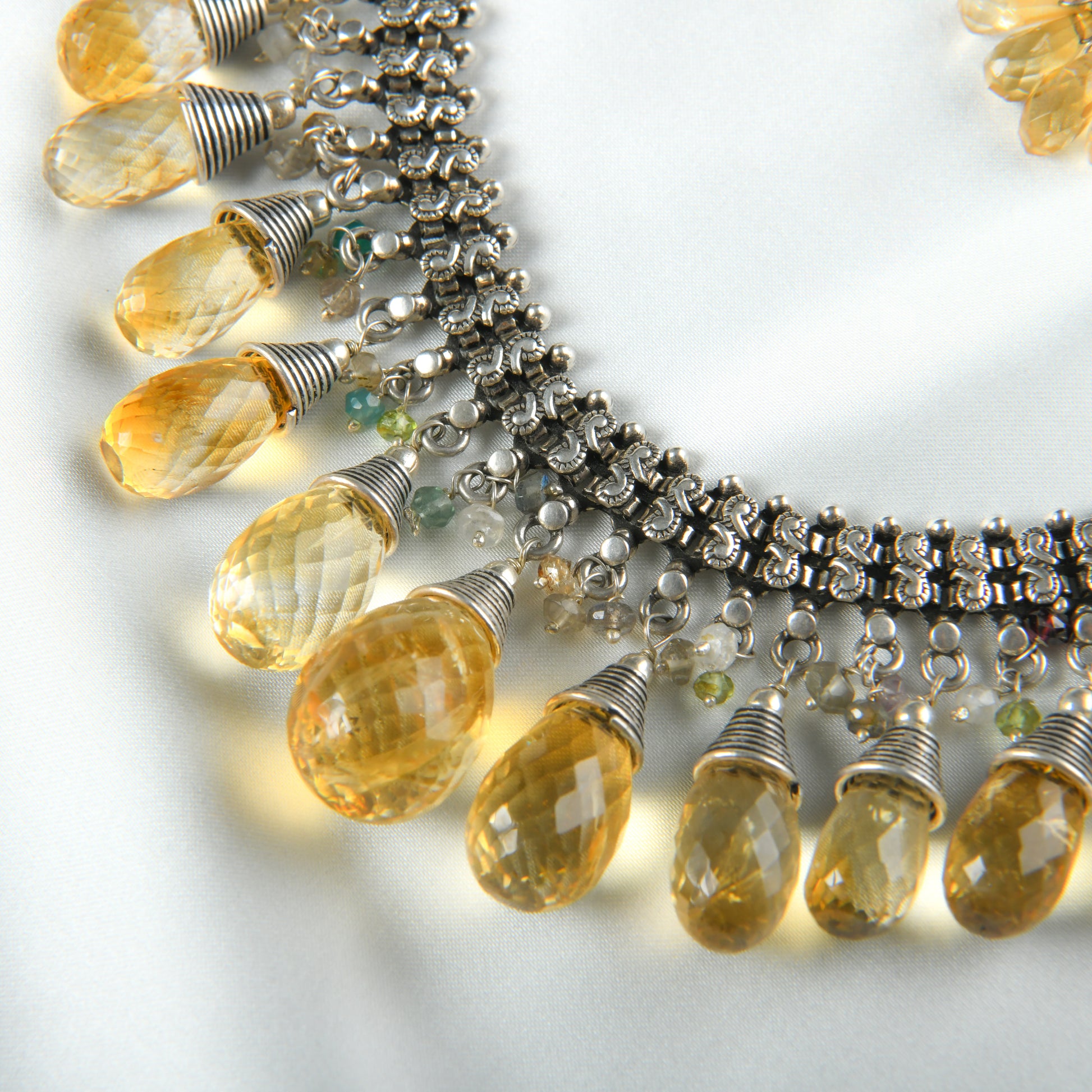 Citrine Drops Silver Necklace Set