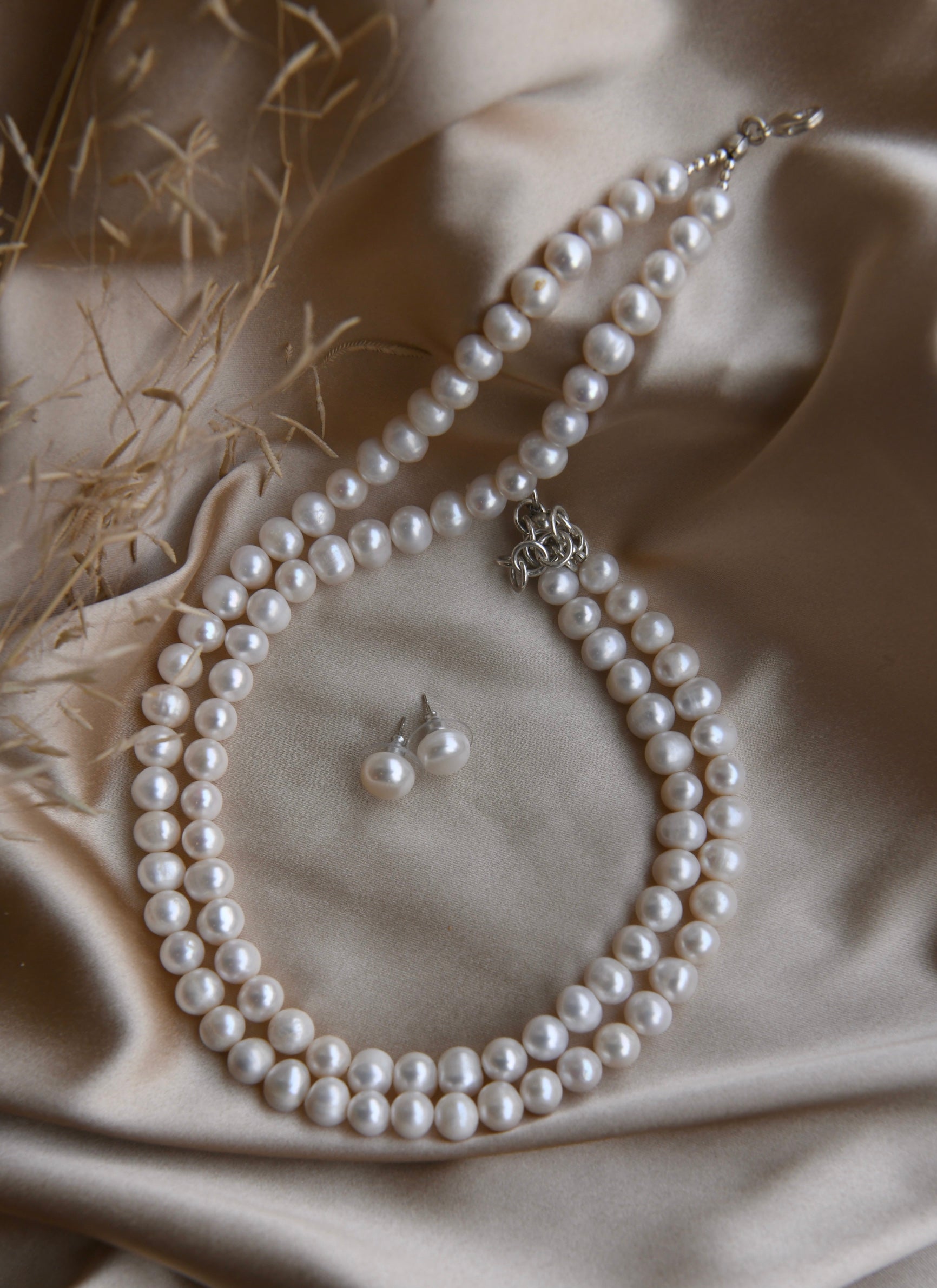 Classic Duet Pearl Necklace with Studs (8 mm Freshwater Pearls)