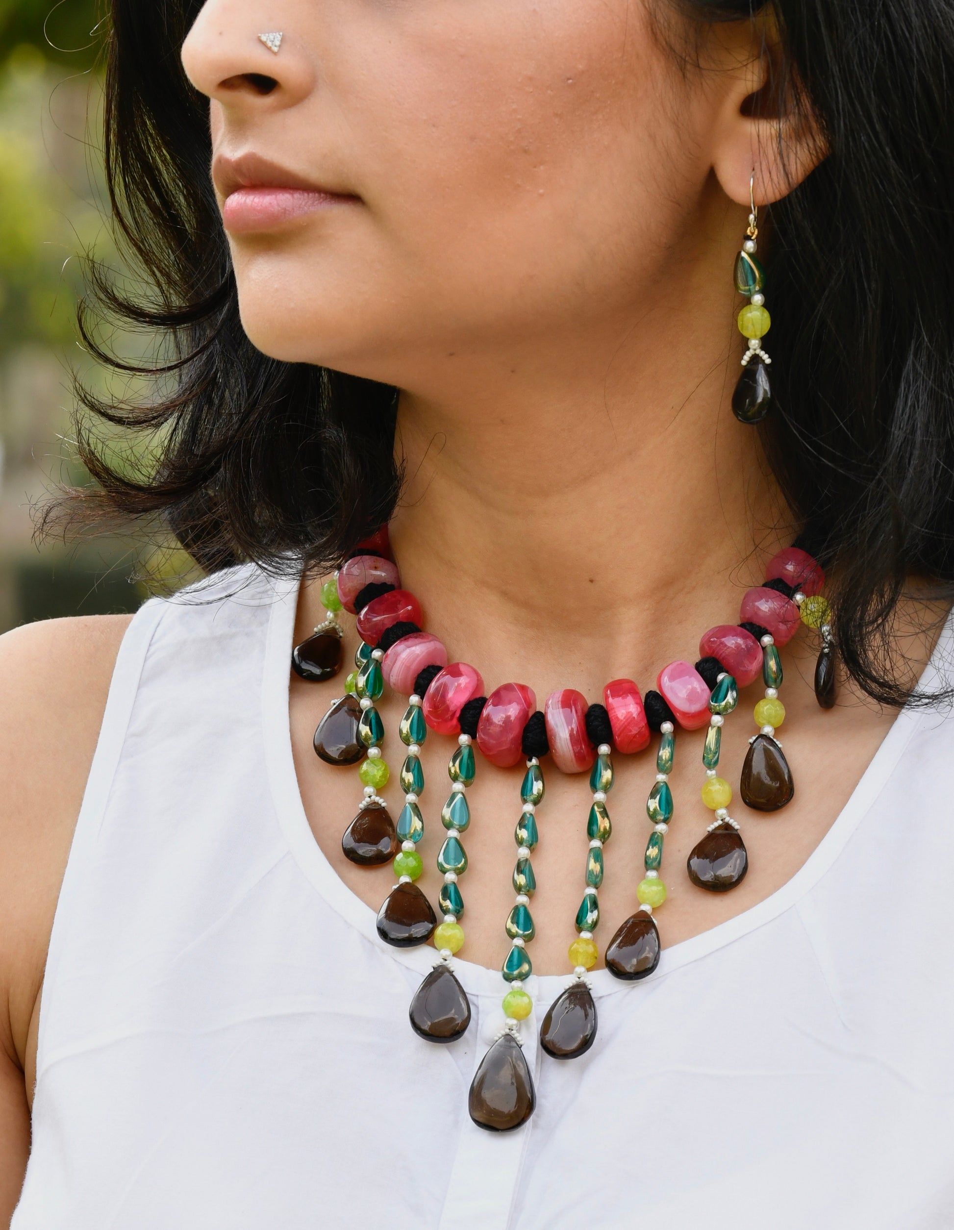 Material: Agates; Smoky Quartz; glass beads; 92.5 silver earring hooks