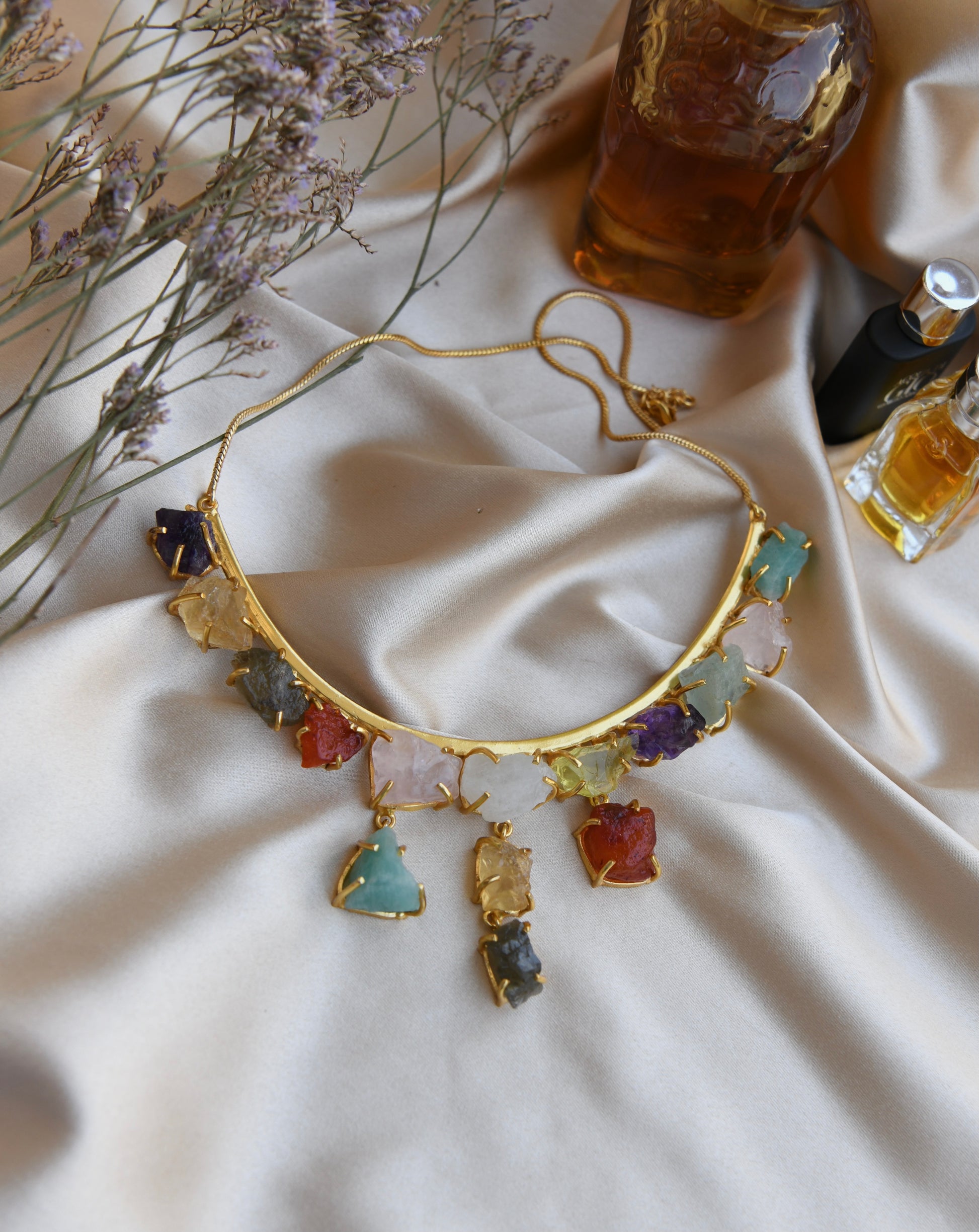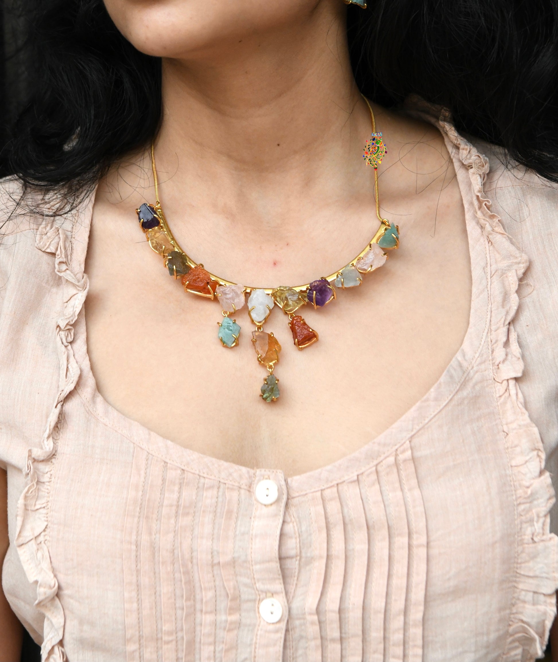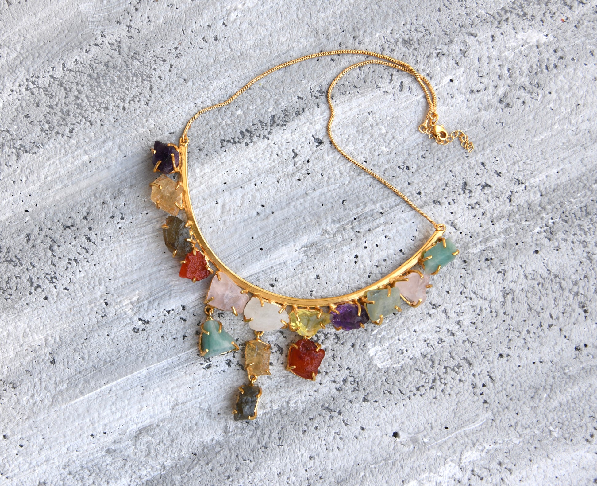22 kt gold plated brass; Semi-precious stones