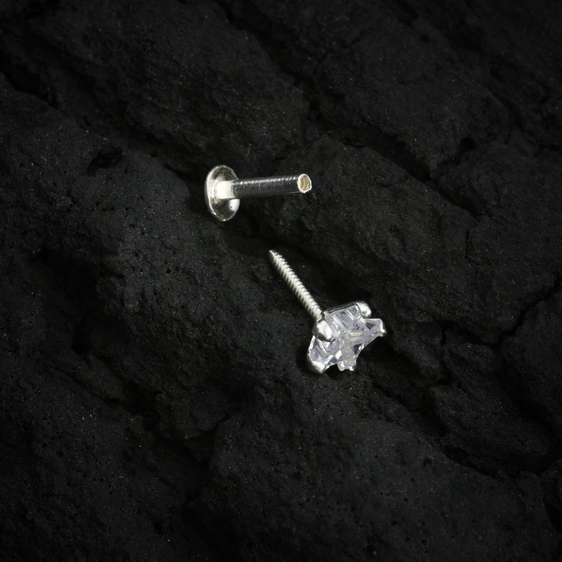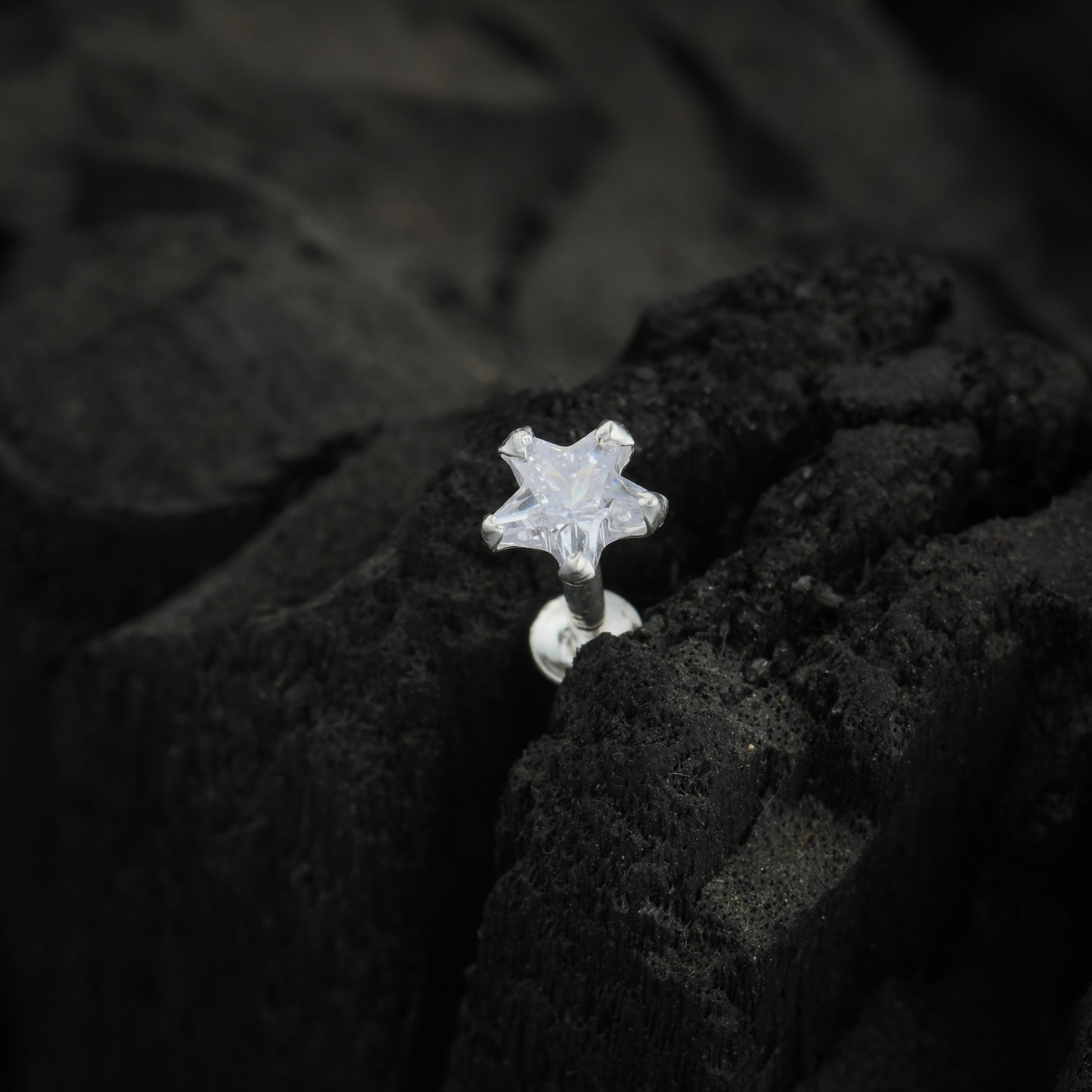 Screw back Type, Needs Piercing, Star Shaped Zircon Solitaire