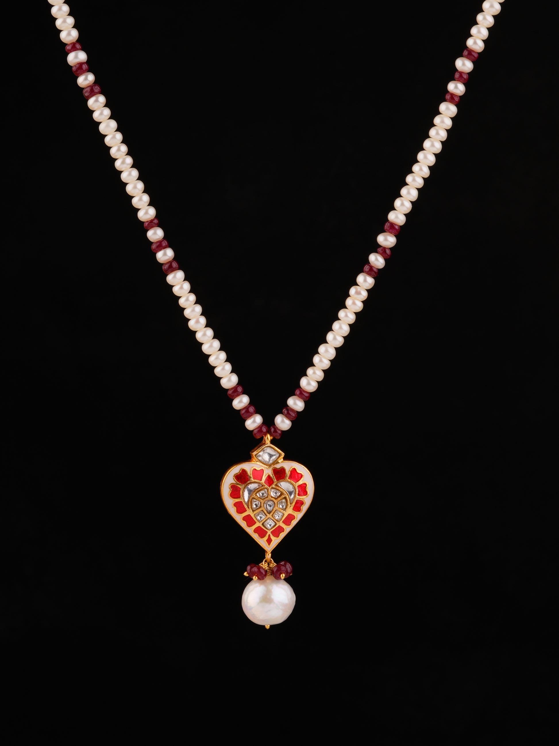 Gold Plated Silver  Pendant, Rubies, Fresh Water Pearls, Baroque Pearls Adjustable Cotton Thread