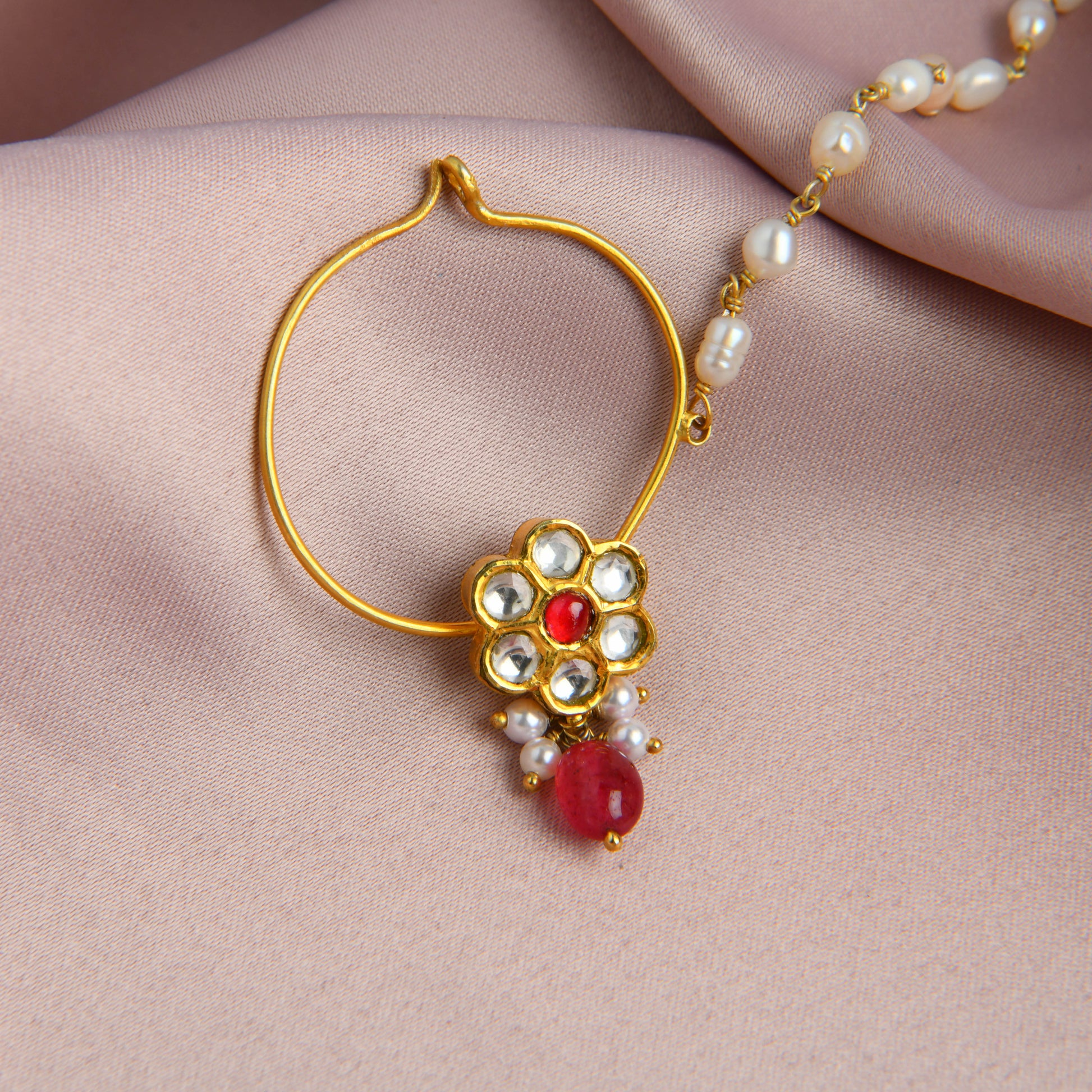 Elegant Silver Kundan Nose Pin( Piercing Type)