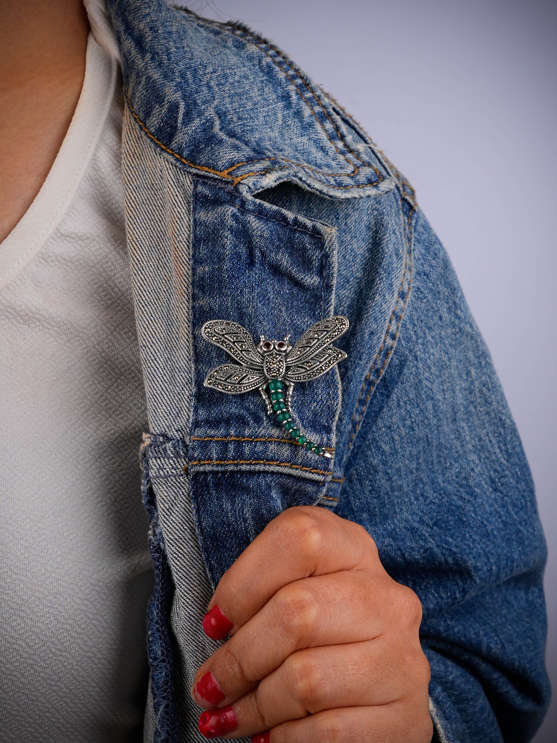 Emerald Elegance: Dragonfly Brooch Cum Pendant