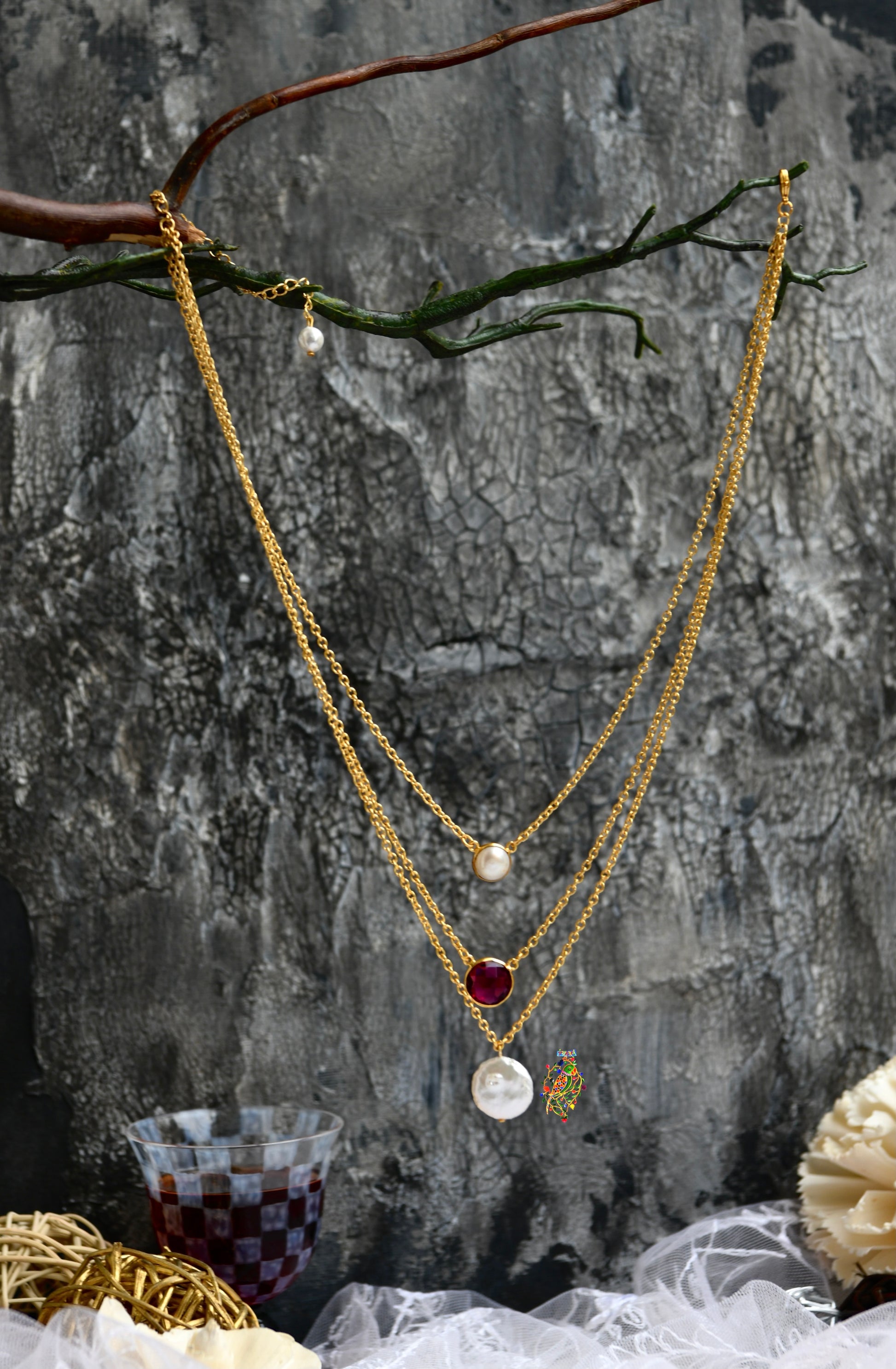 Semiprecious Ruby; Freshwater Pearls; Gold-Plated Brass
