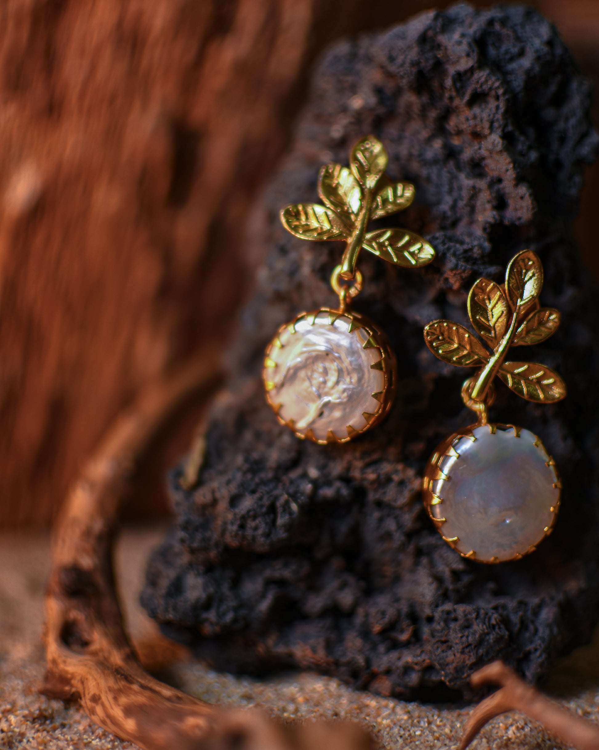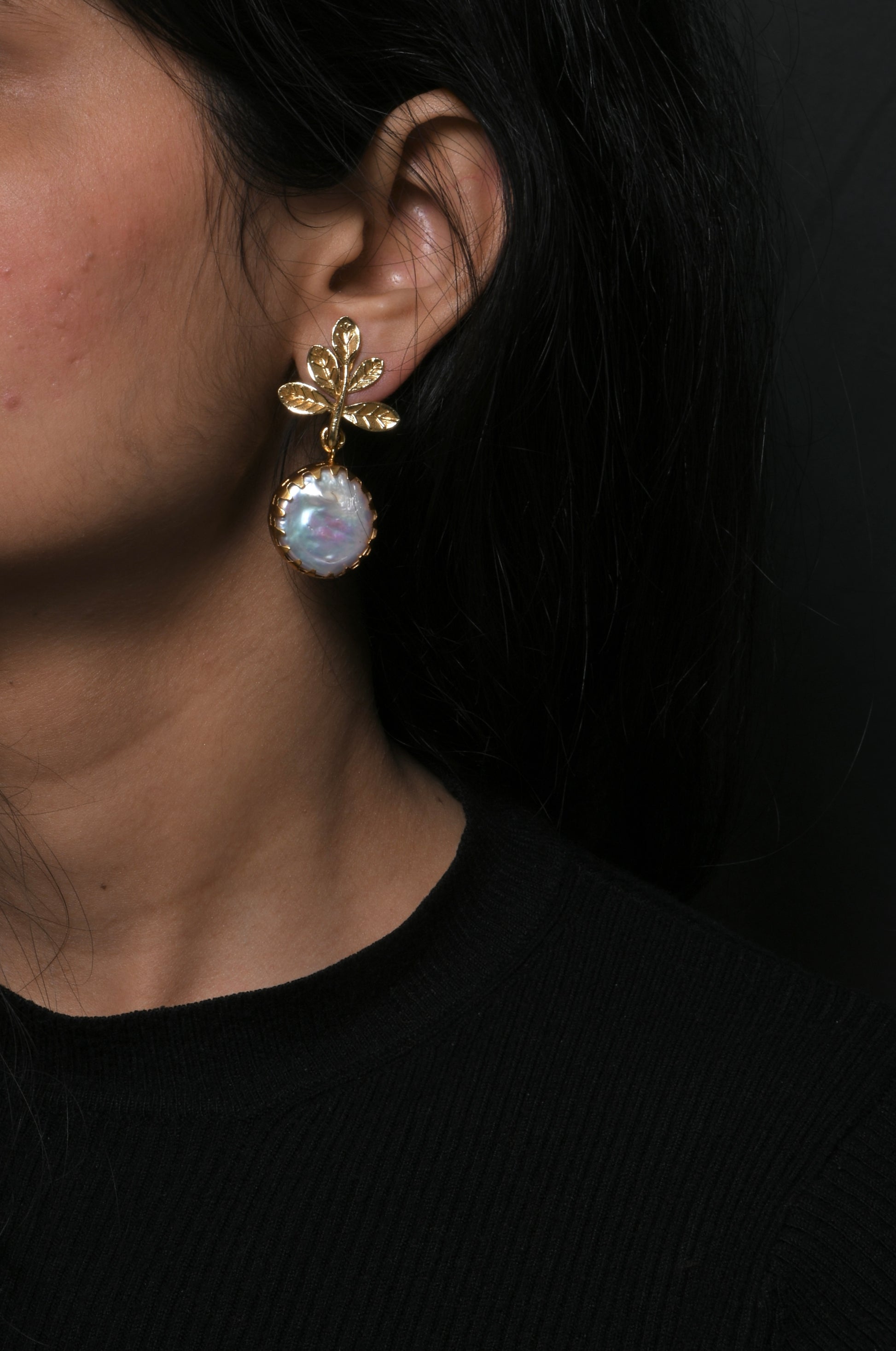 Floral Leaf Pearl Earrings