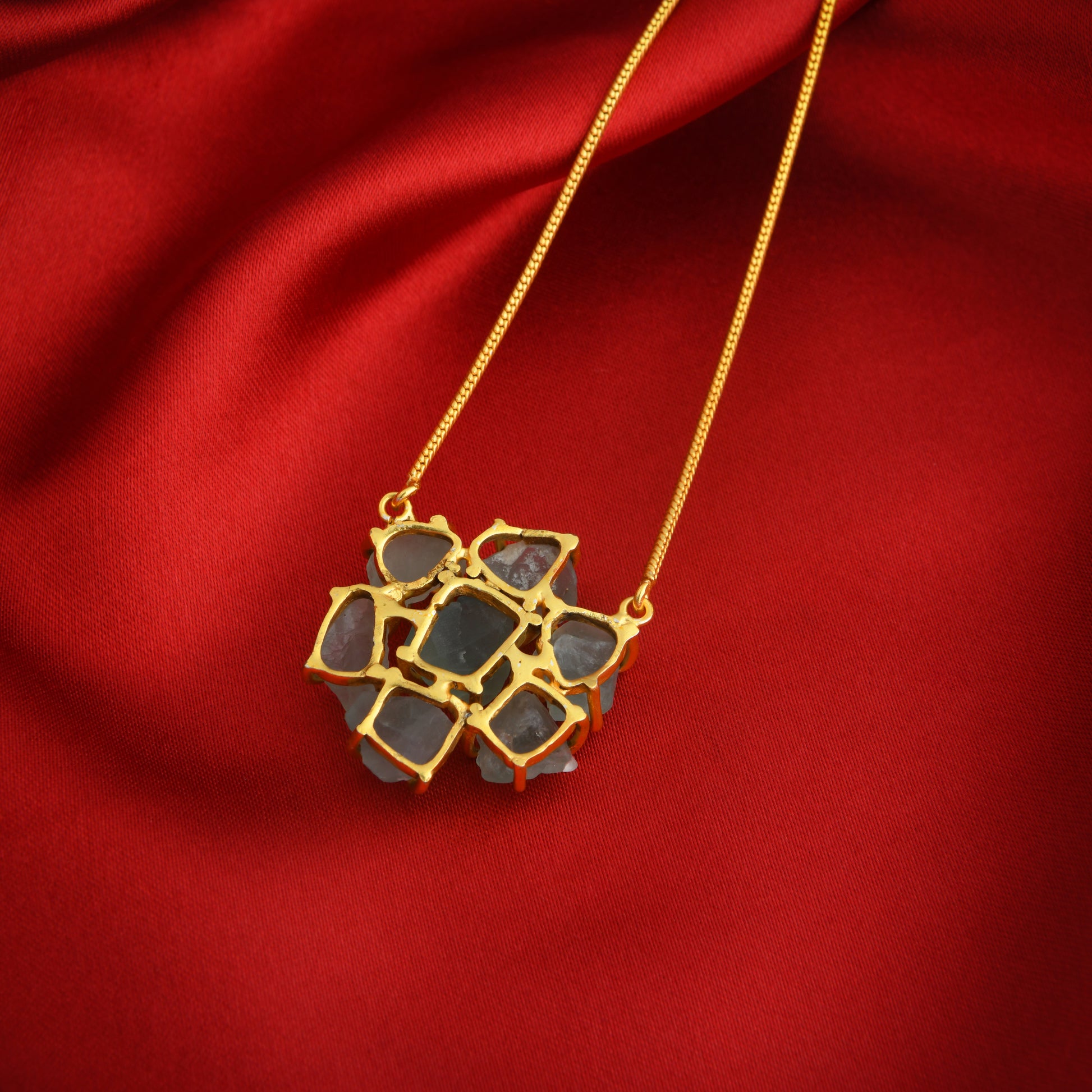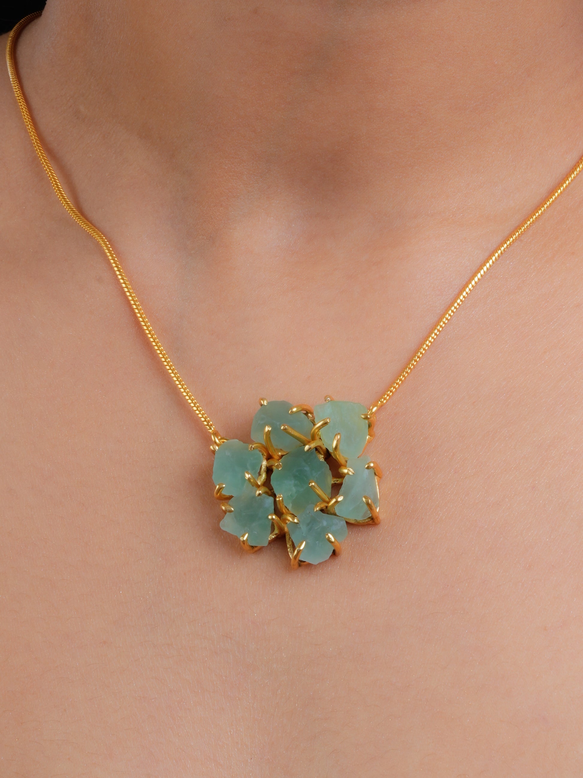 Uncut Green Amethyst stones studded in 22 kt gold-plated brass
