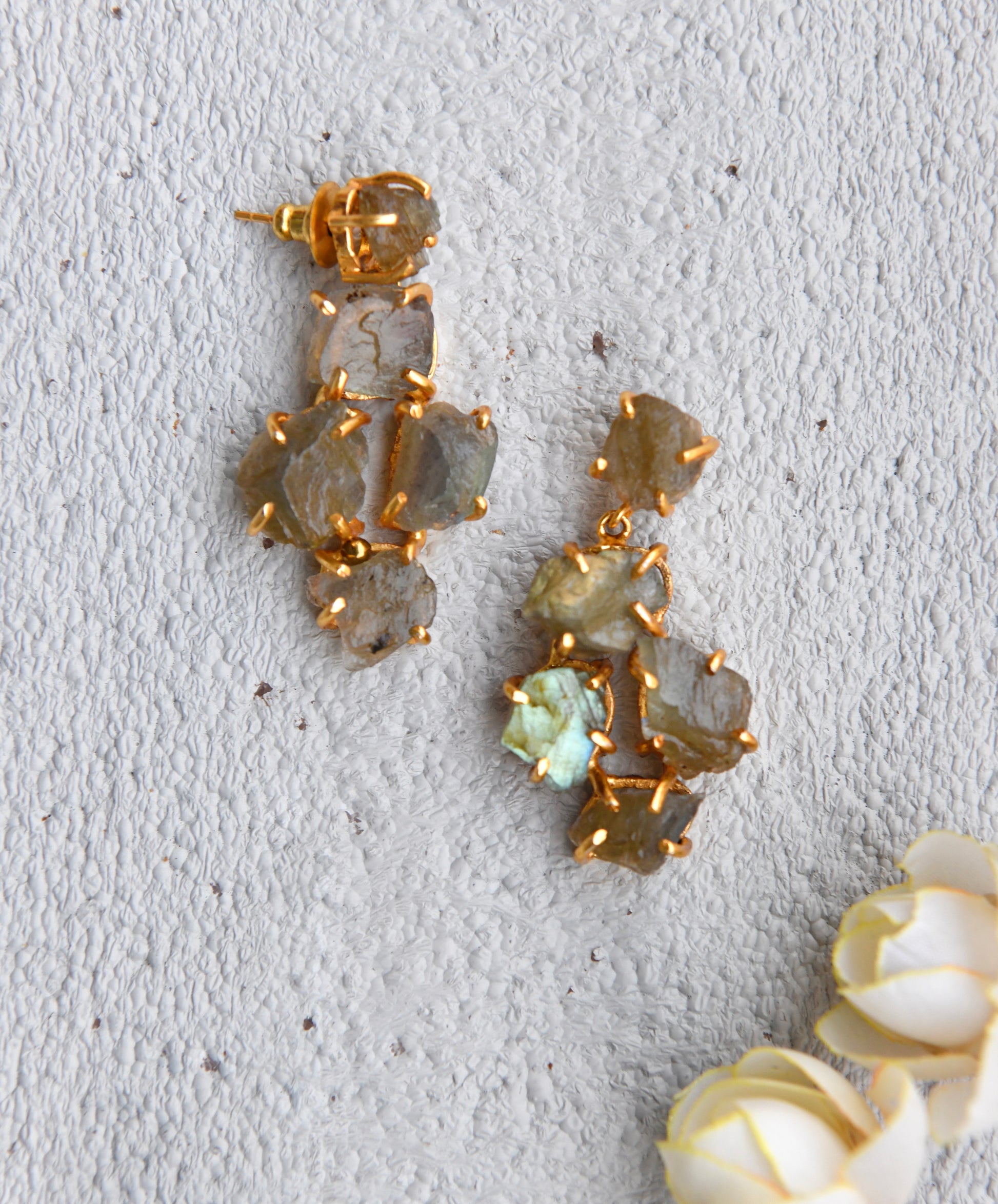 Real uncut Labradorite studded in Gold Plated Brass