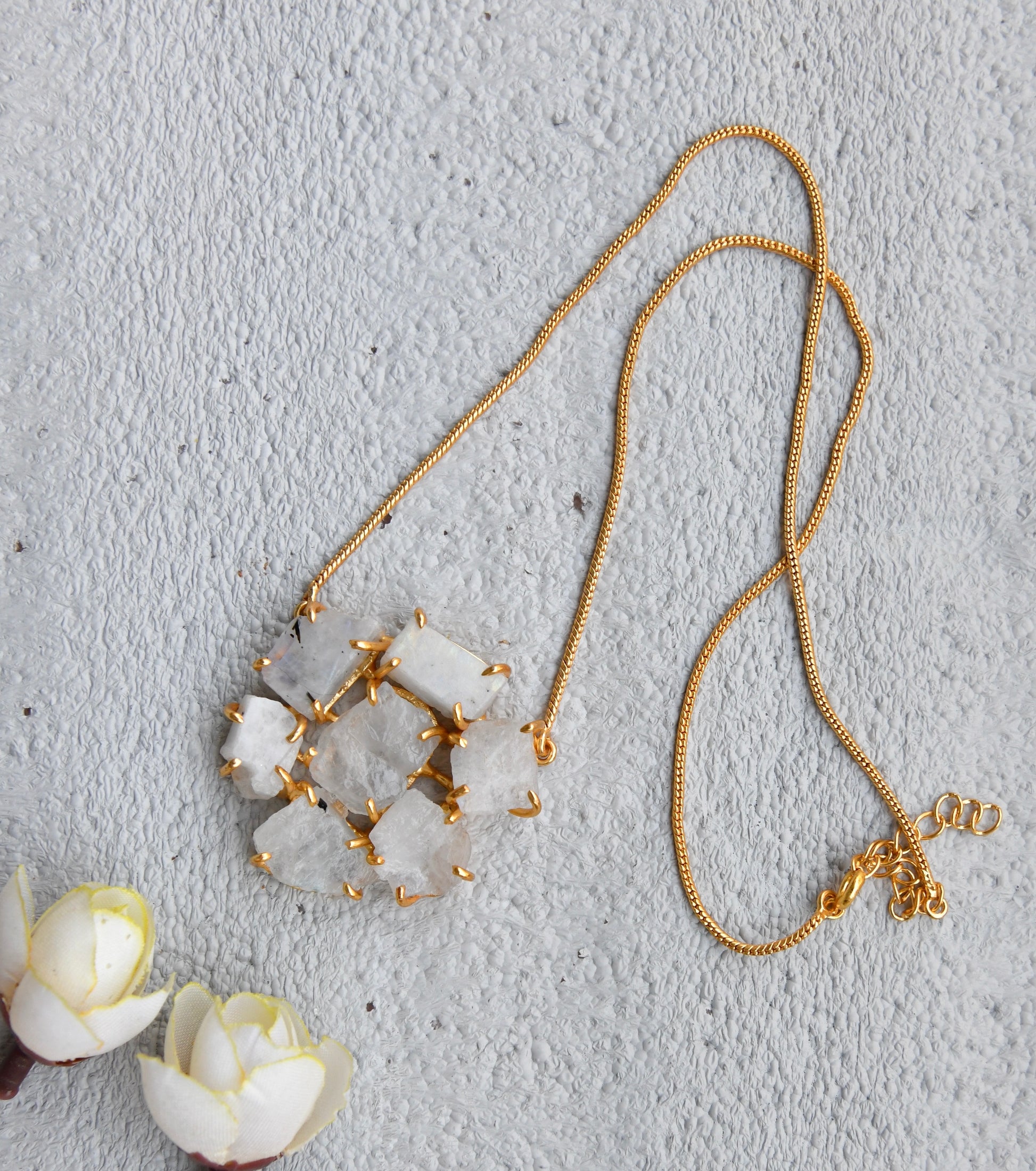 Real Semiprecious Moonstone studded in 22 carat Gold Plated Brass