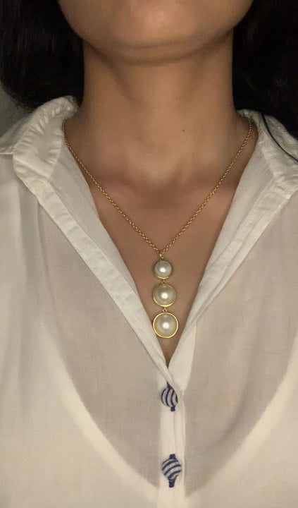 Length of Necklace 18 inches plus 2 inches adjustable Length of pendant 5.2 cm Width of pendant pearls 1.5 cm, 1.3 cm, 1.1 cm Length of earrings 6 cm Width of earring pearls 1.5 cm, 1.3 cm, 1.1 cm |