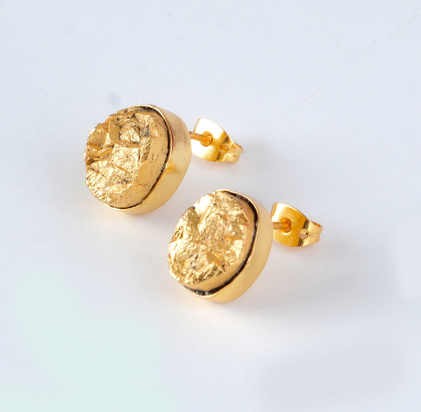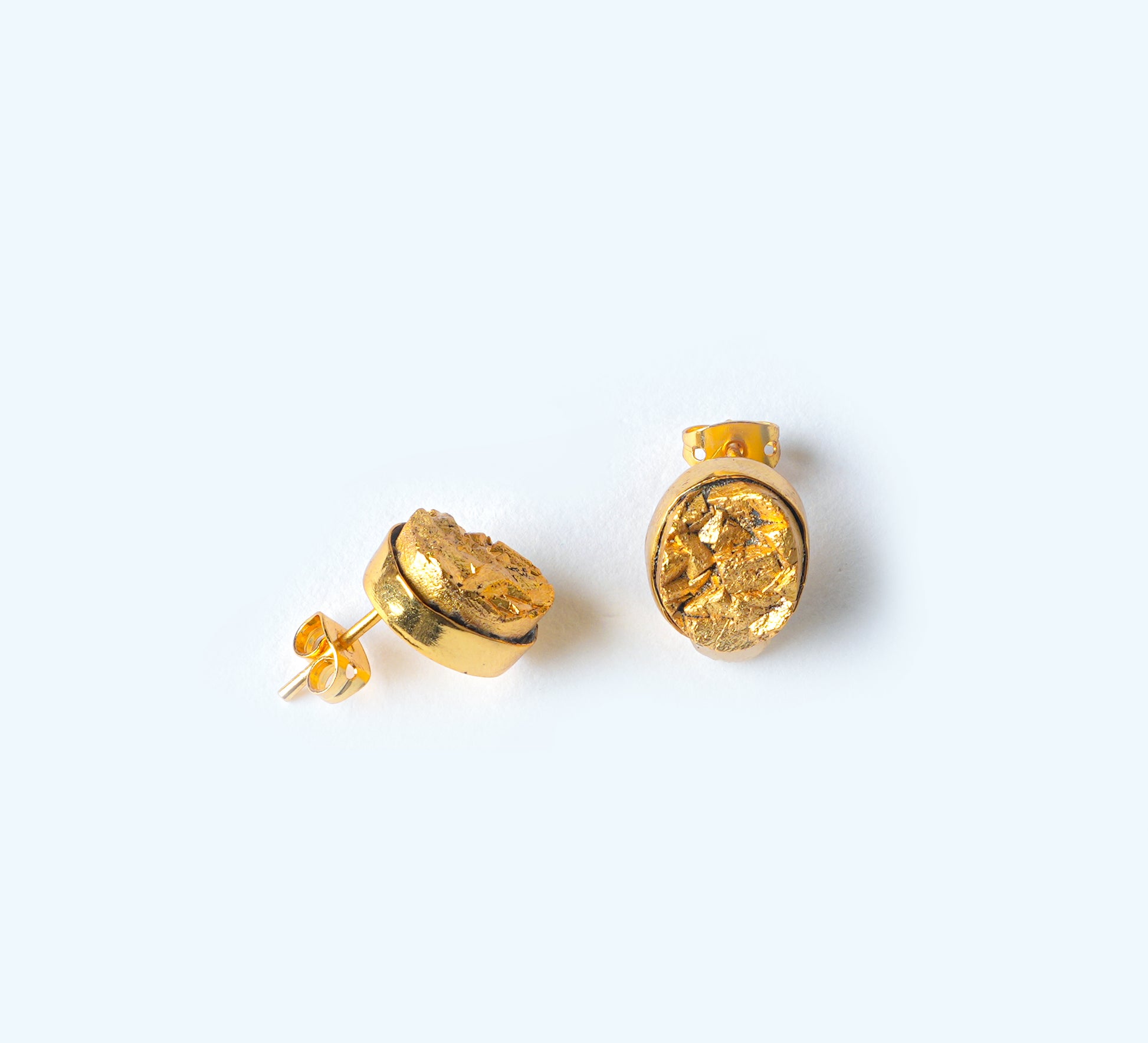 Gold-dipped Pyrite Stone; 22kt Gold-plated Brass