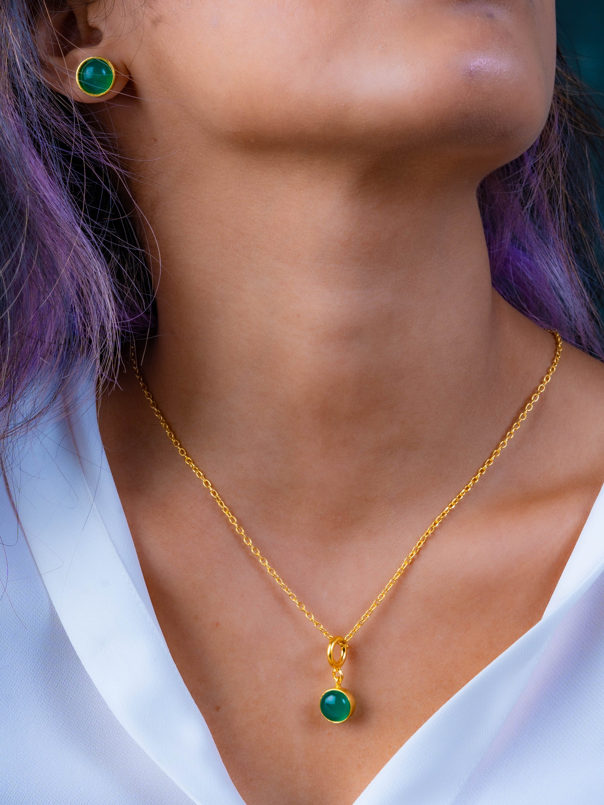 22kt Gold Plated Brass; Green Onyx Stone
