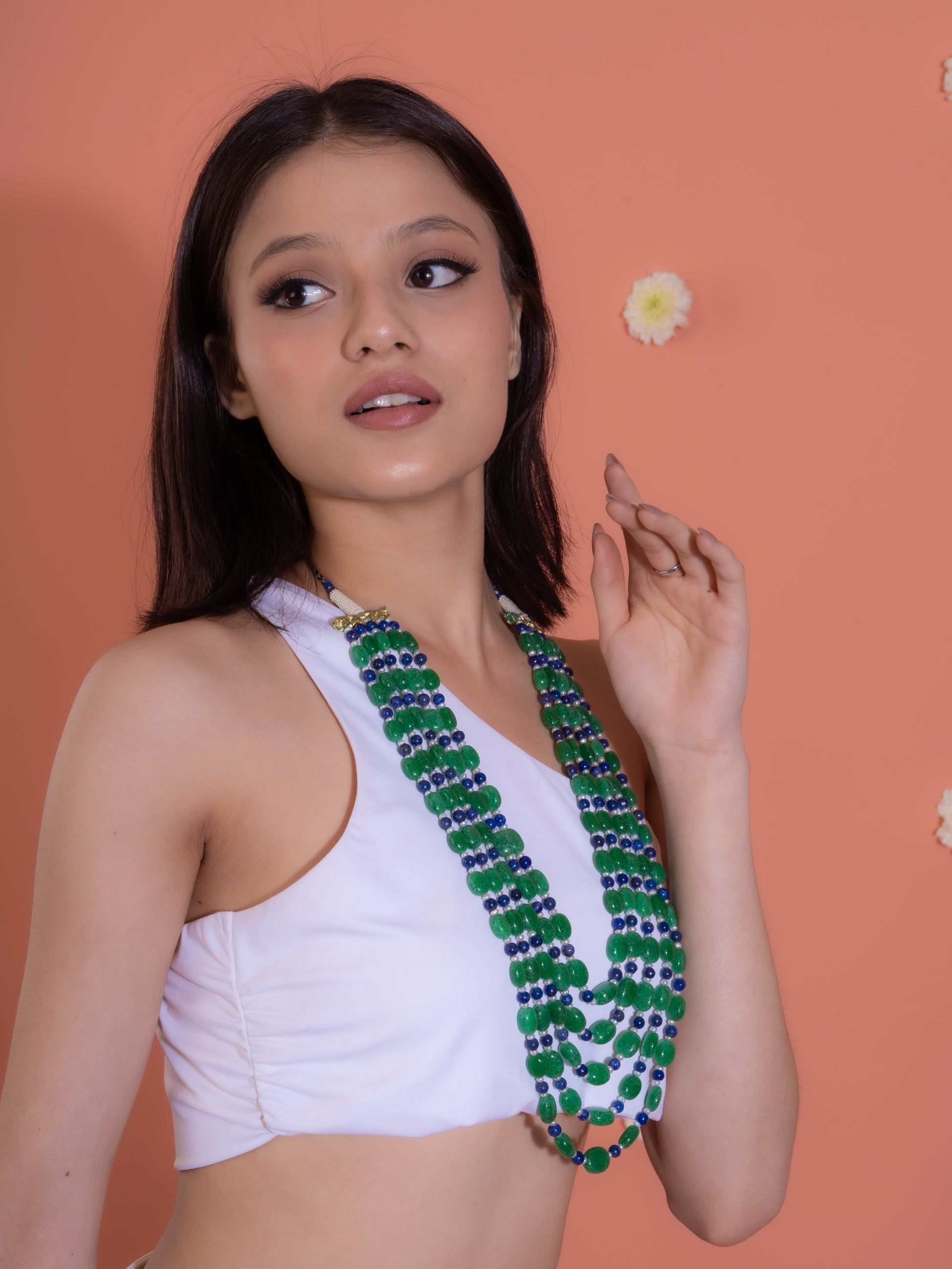 Green Quartz Lapis And Freshwater Pearls Multi Layered Necklace