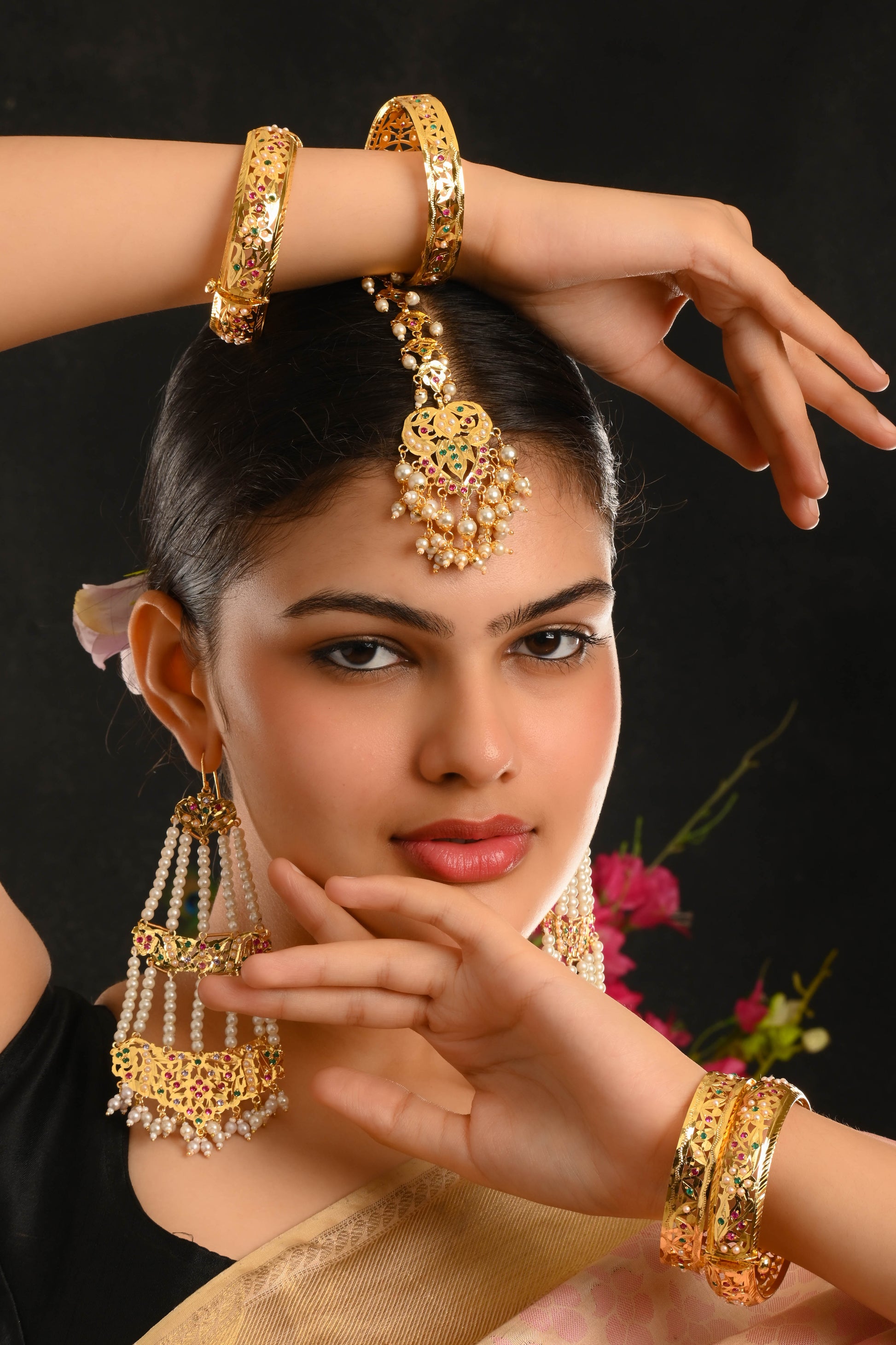 Dive into the rich artistry of Patra jewelry. The Gulbahar Bangle Set is not just an accessory; it’s a statement of elegance and tradition.