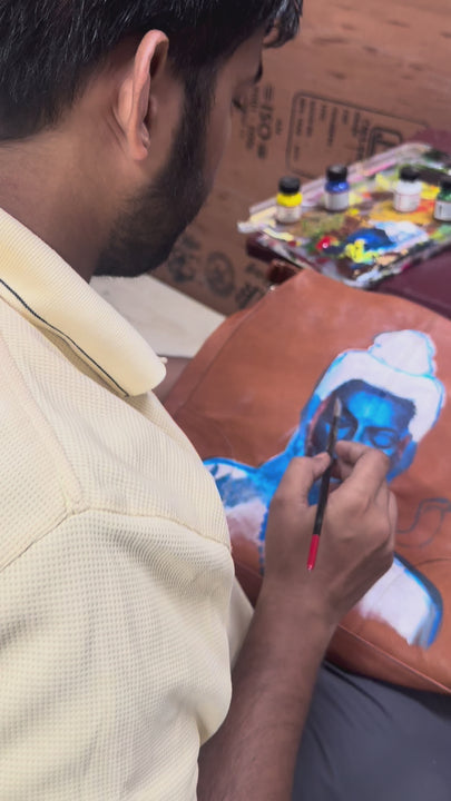 Lord Shiva is the Supreme example of Symbolism in Indian Art. Every Symbol from Crescent moon,Third Eye, Three Lines on His Forehead, Snakes around his neck, Trishula(His weapon) and even his Hand Gesture(Gyan Mudra) have a very profound meaning. He is an Integral Part of Indian Culture. We have used the Best Leather Paints to show the details and vibrancy of our inspiration in painting our bags. Since this is Hand Painted so this is One-of-Kind bag. In today's time when everything is mass produced. Hand Painting is an Extremely Slow Process which makes every bag very Unique.