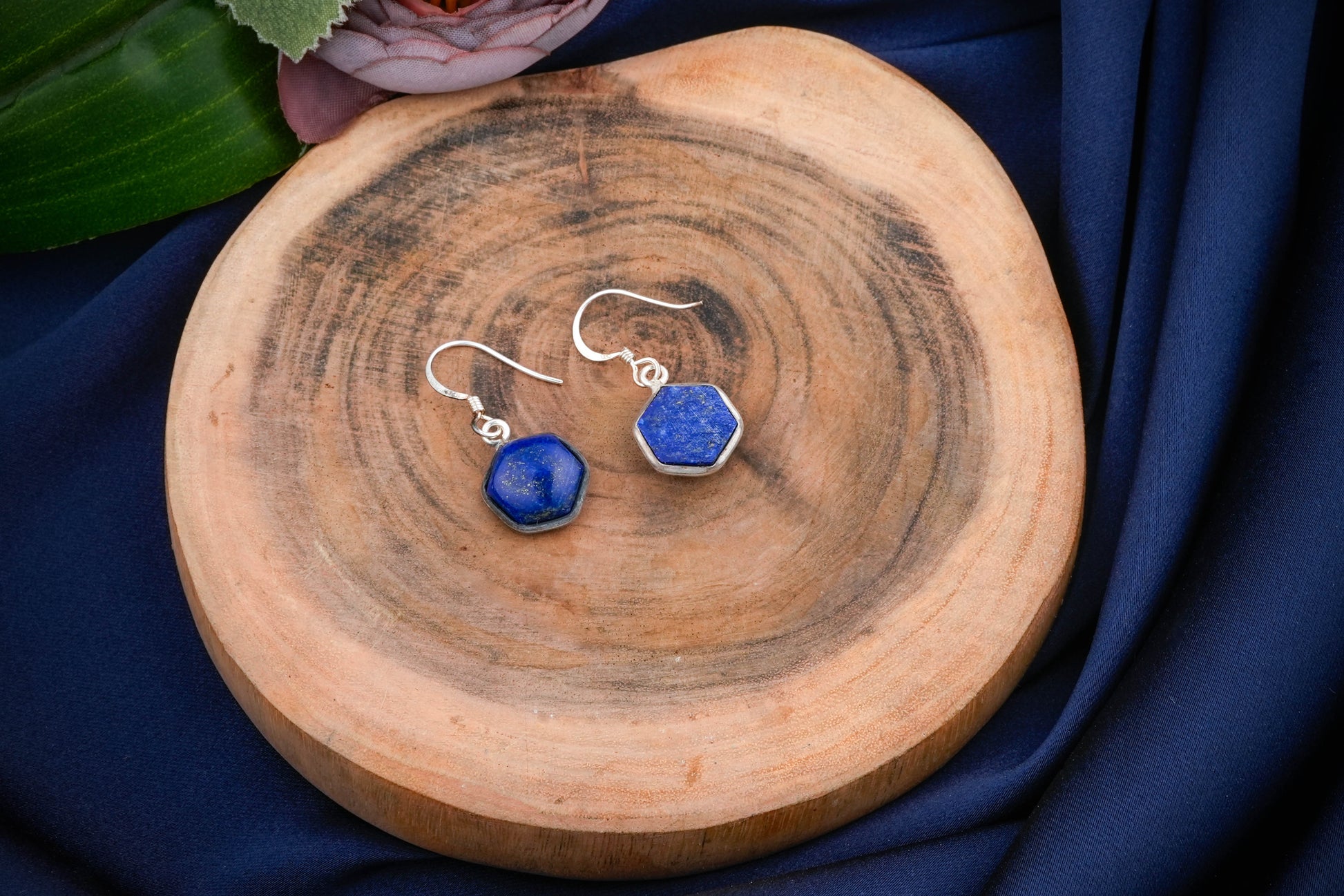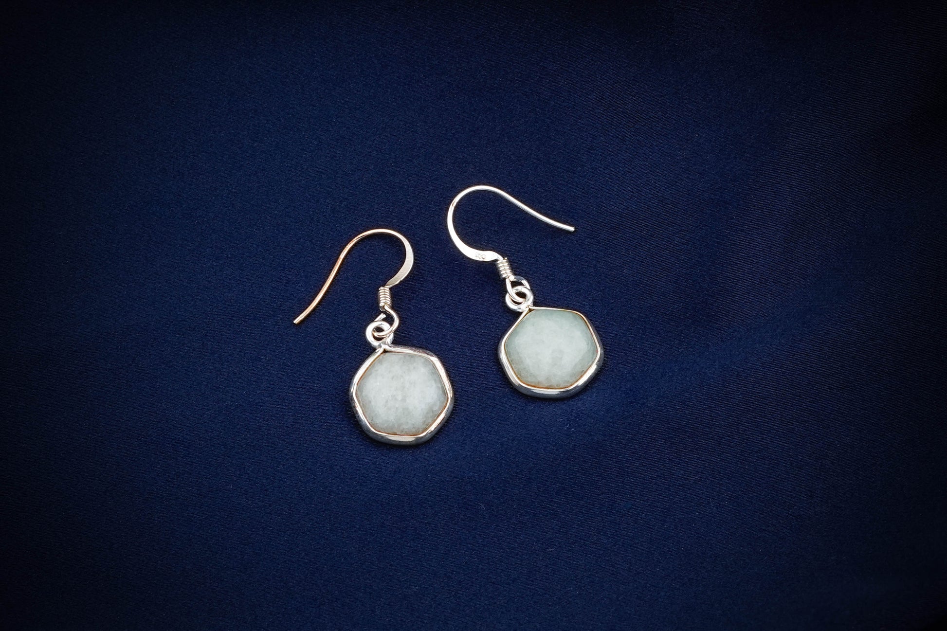 Hexagonal Stone Drop Silver Earrings
