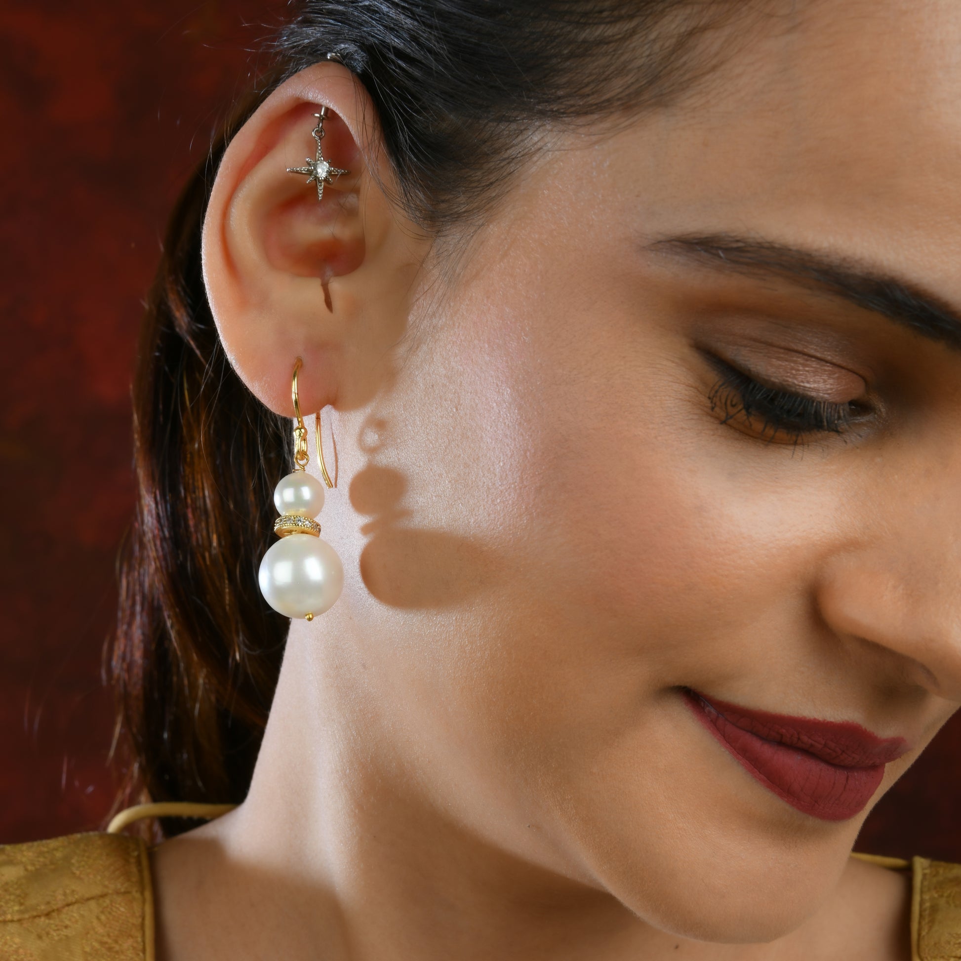 Wear something special with these beautifully crafted High Tea Pearl Earrings. Elegant and timeless, these earrings will make a stunning addition to your jewelry collection. The lustrous pearls delicately nestled within the golden setting make these earrings a luxurious must-have.