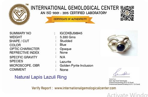 This Chakra is located between your two physical eyes. Balanced Third eye Chakra means Greater Intuition and Understanding. Wearing a Lapis Lazuli Ring enforces your subconscious mind to meditate on the Chakra and enhances the smooth energy flow through all chakras.