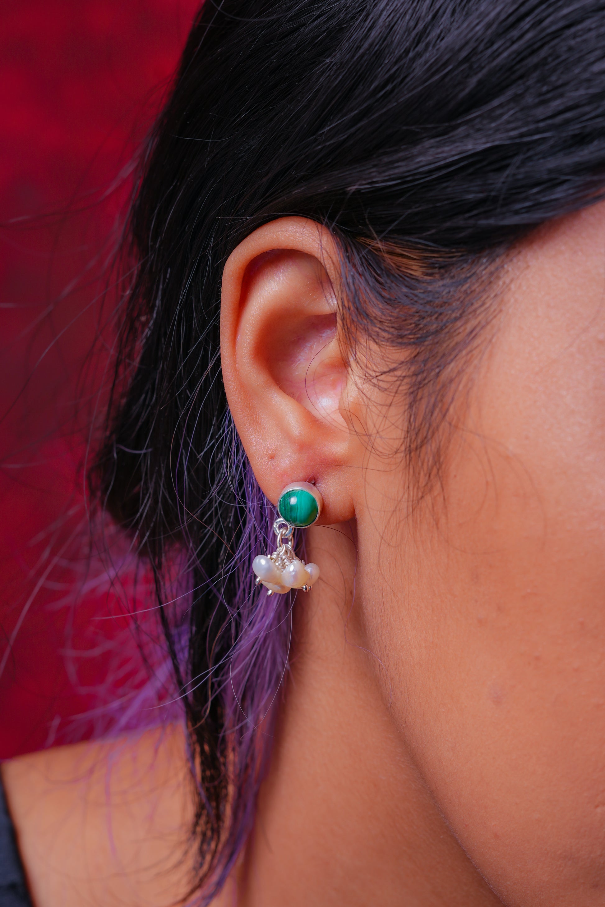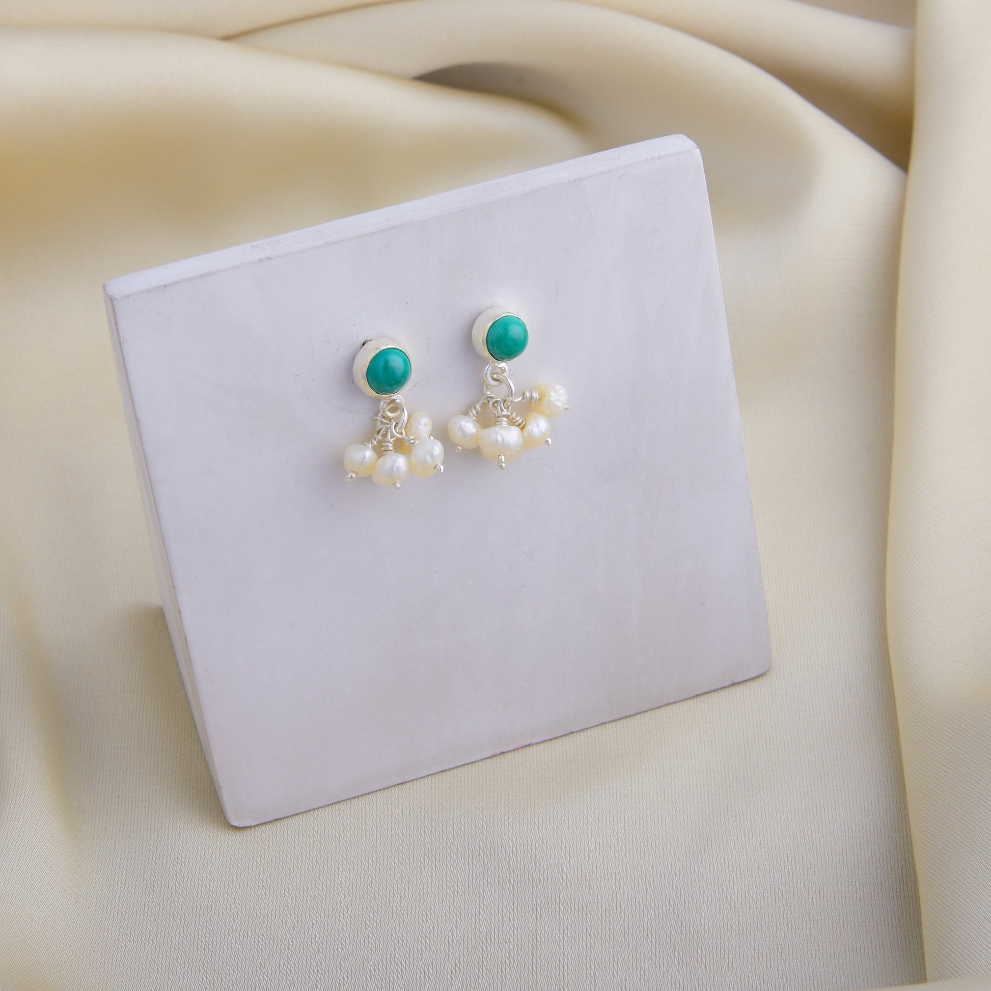 Malachite Pearl Silver Studs