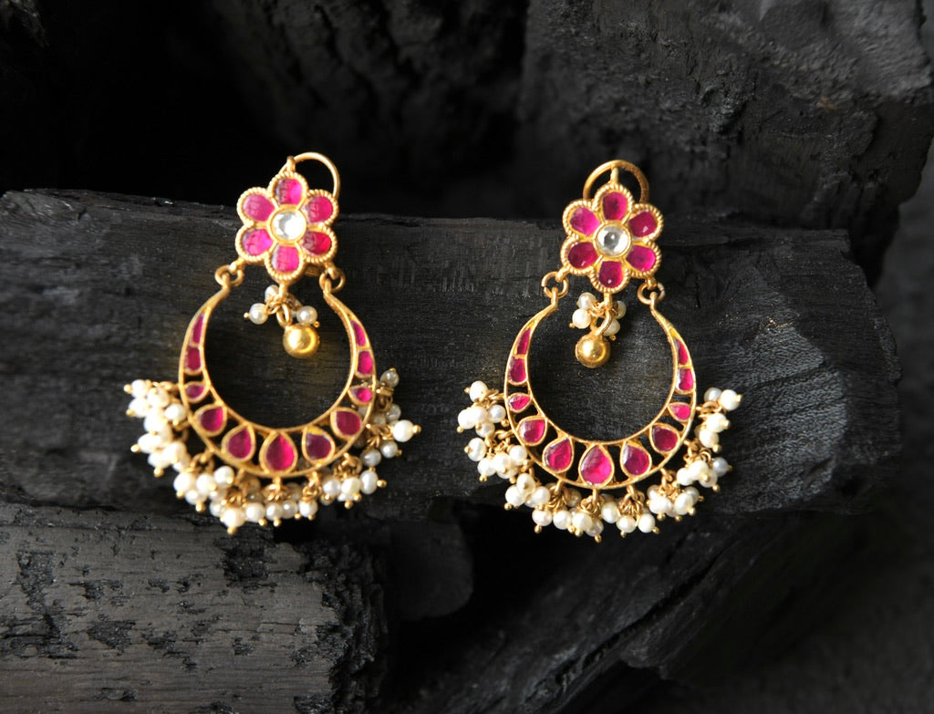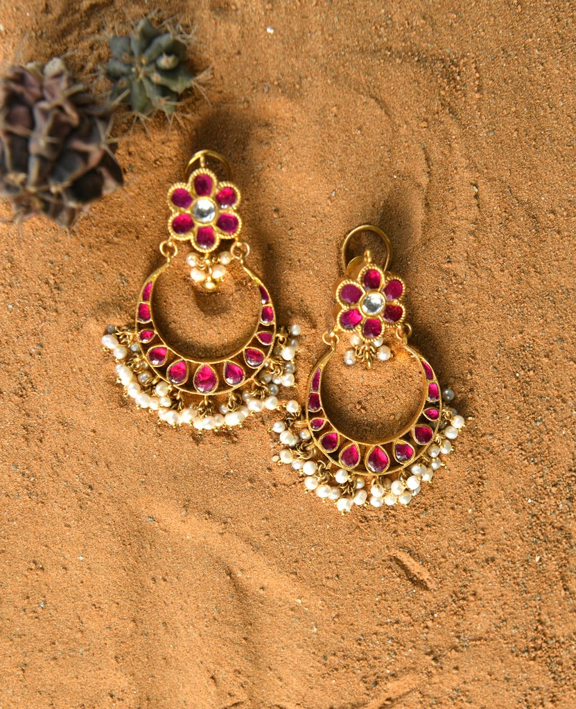 Kundan Floral Chaand Balis