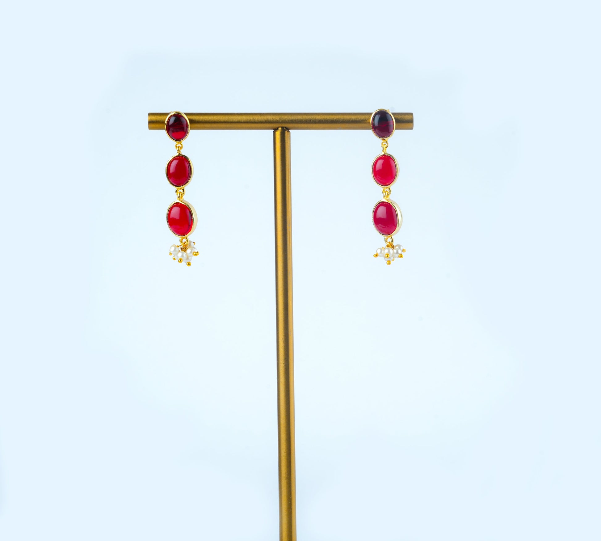 22kt Gold Plated Brass; Synthetic Rubies and Pearls