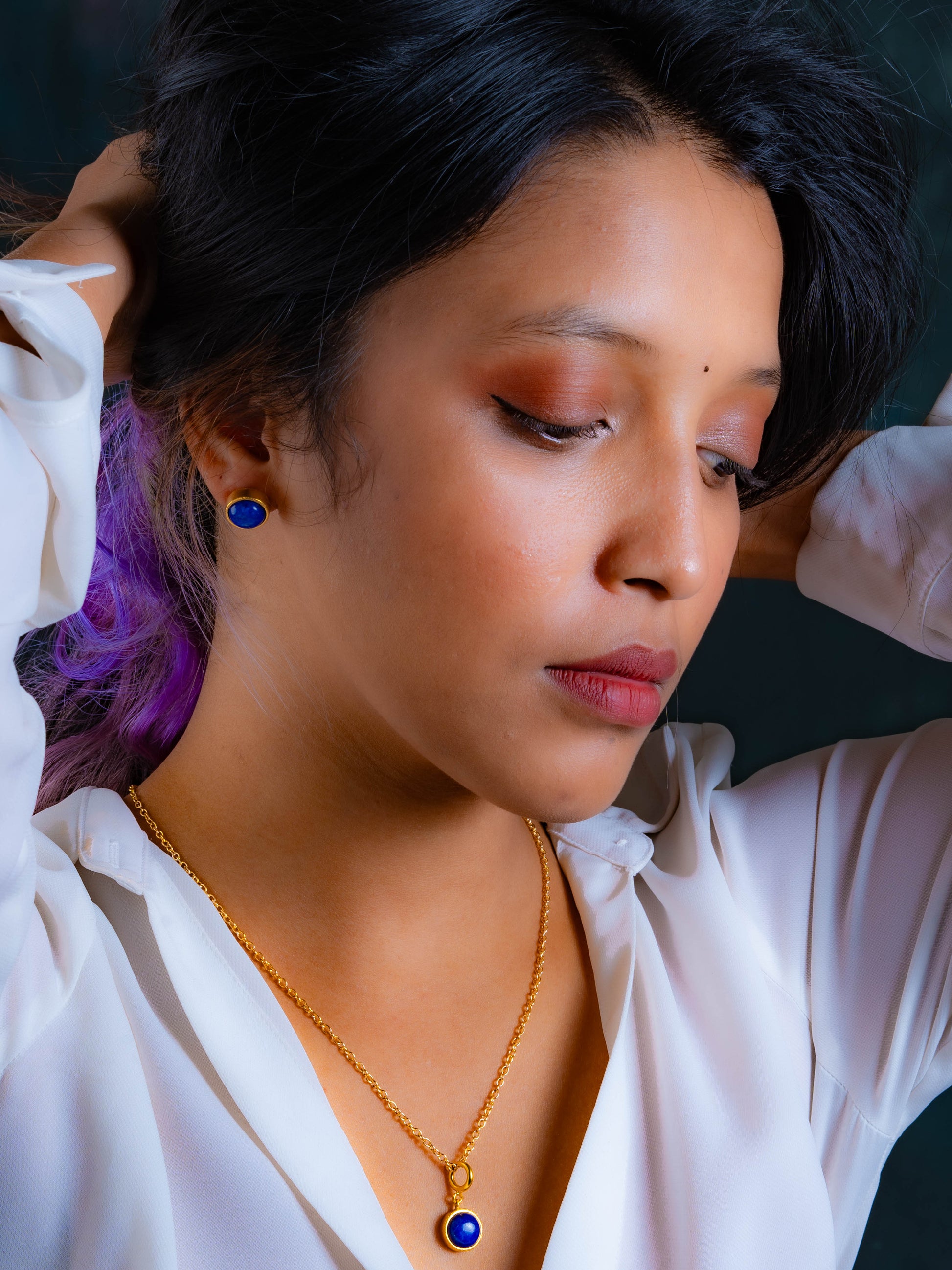 22kt Gold Plated Brass; Lapis Lazuli Stone