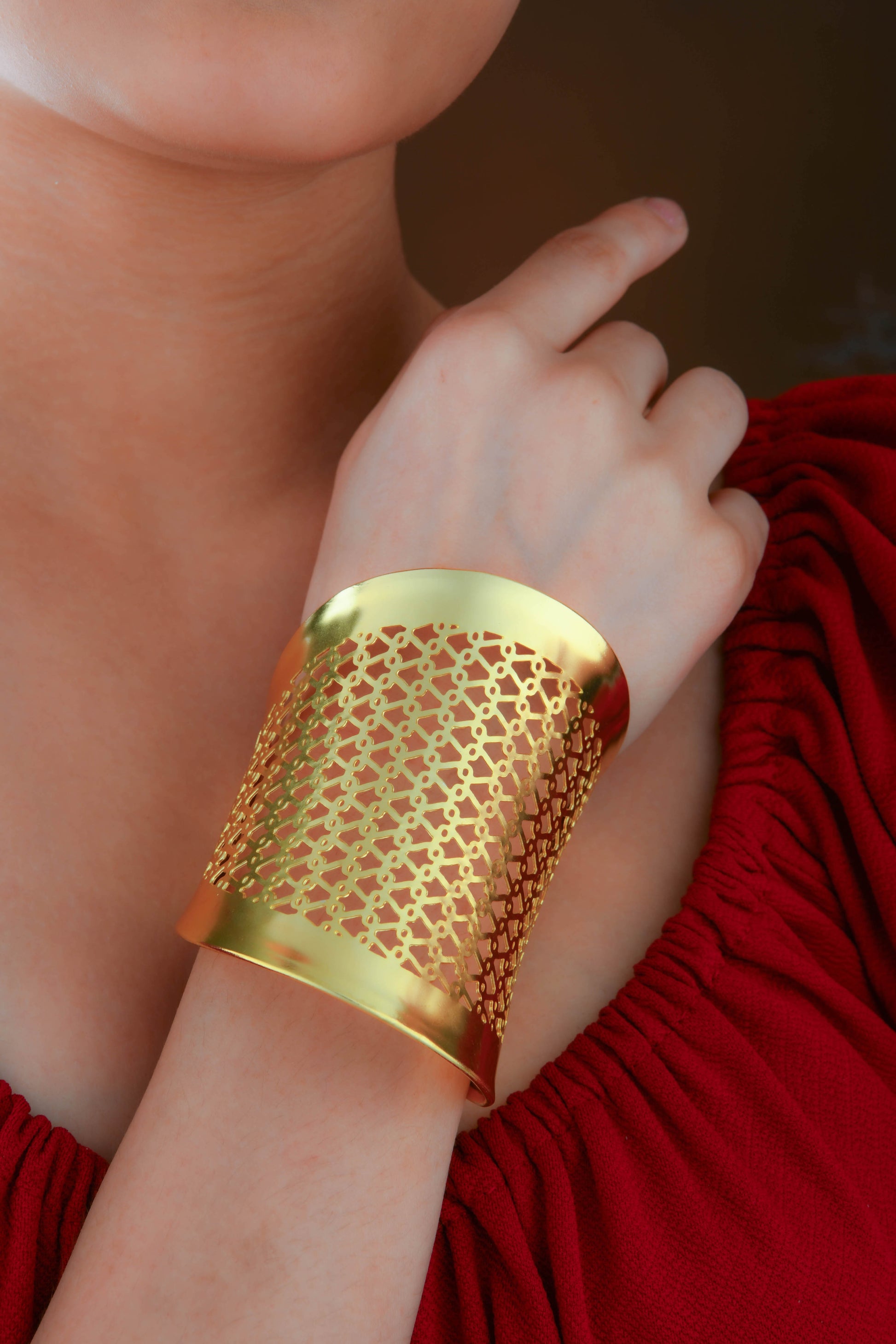 Lattice Brass Statement Cuff