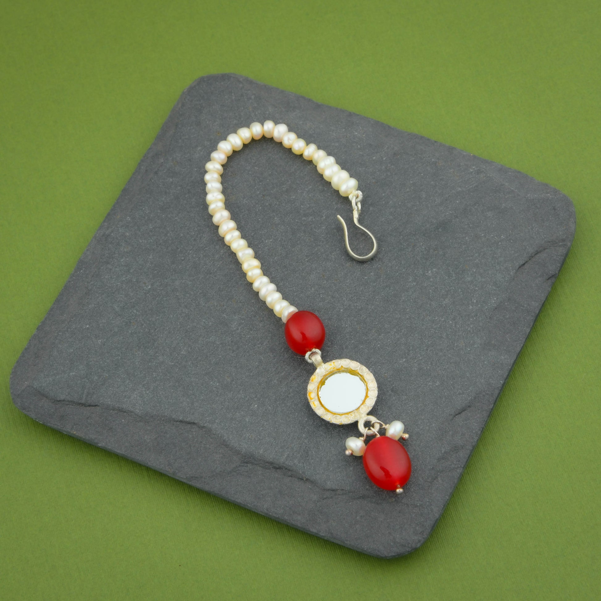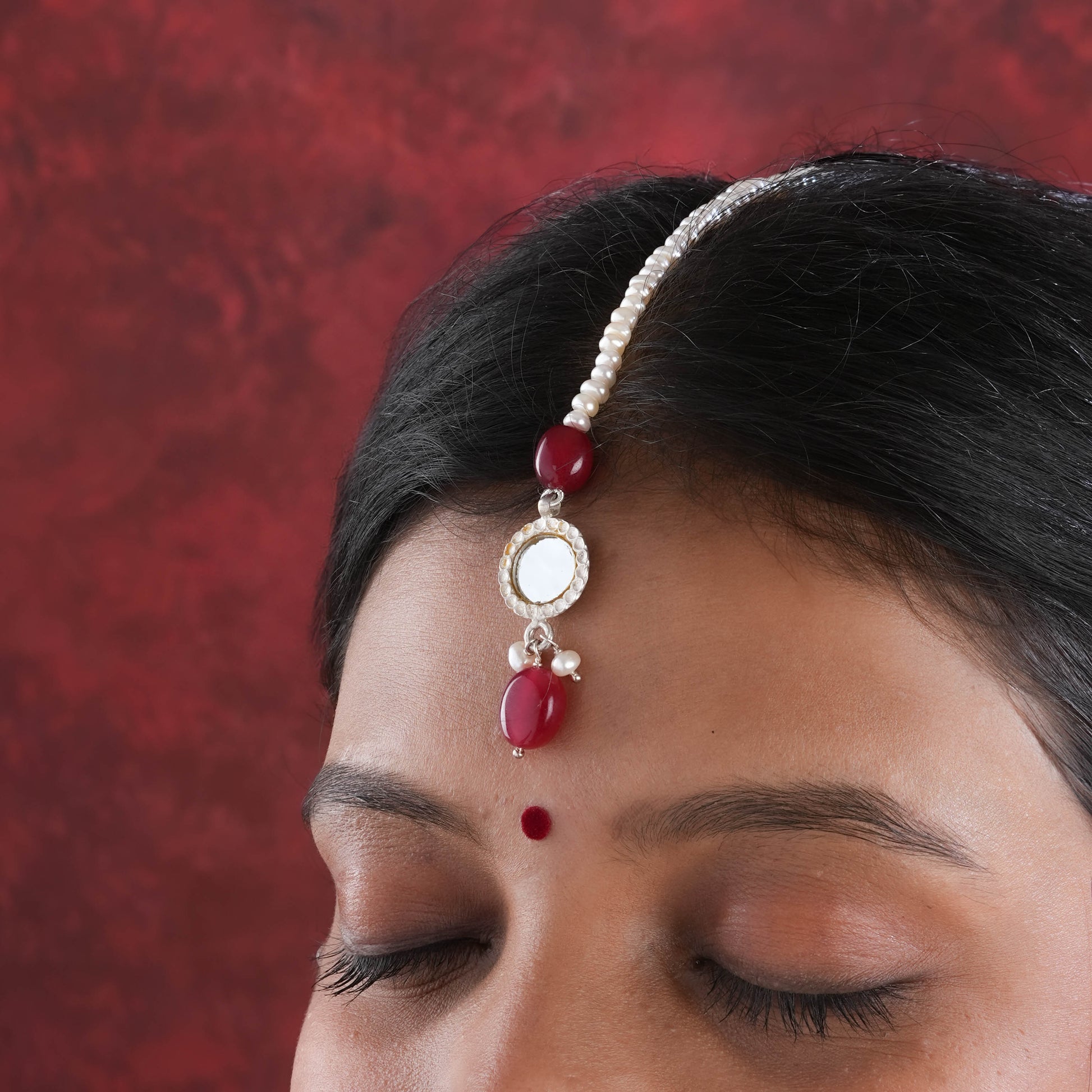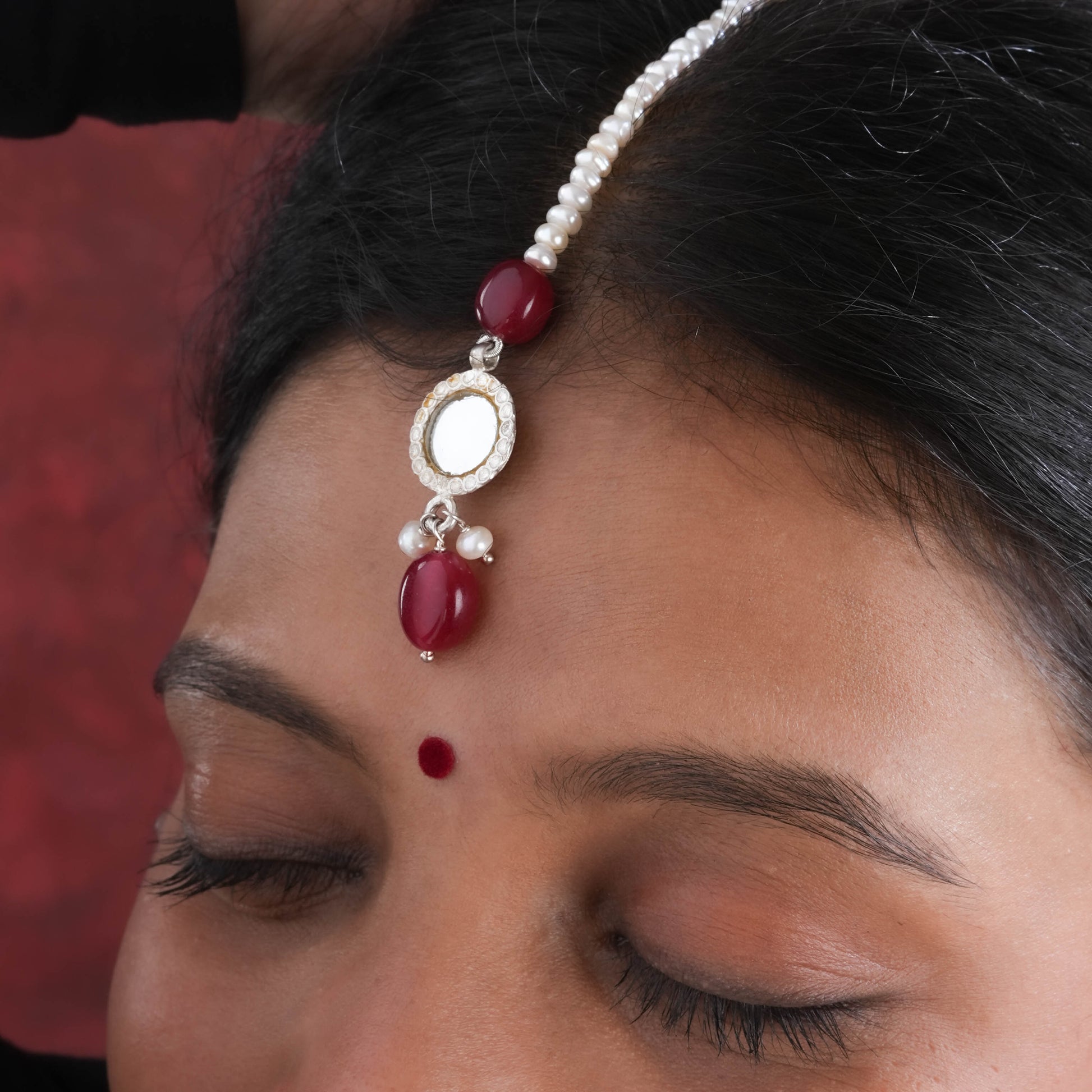 Madhu Chandrika Mirror Pearl Silver Maang Tikka