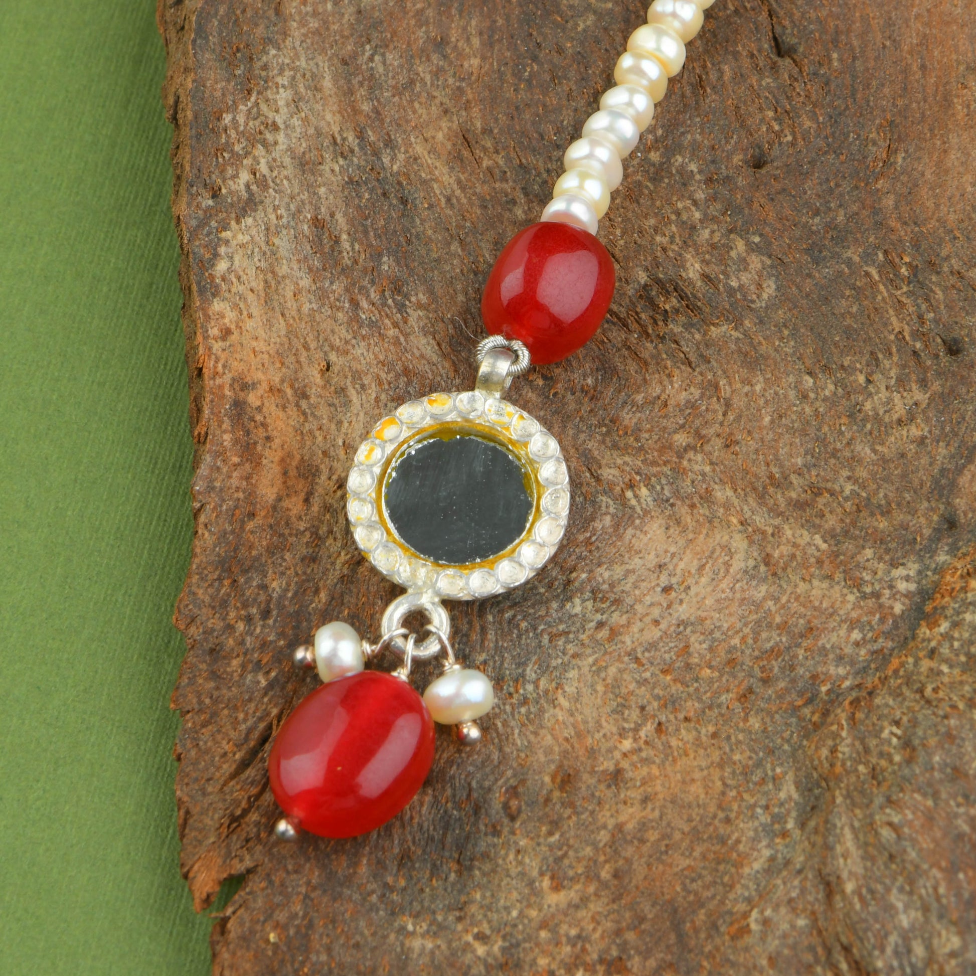 Silver, Ruby/Red onyx Stones, Freshwater  Pearls