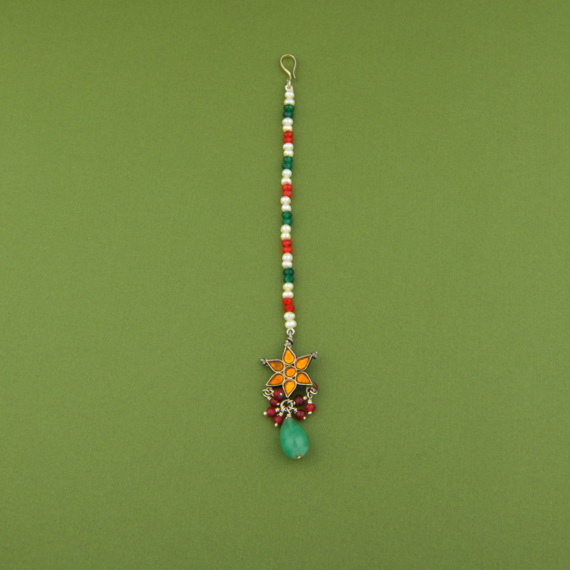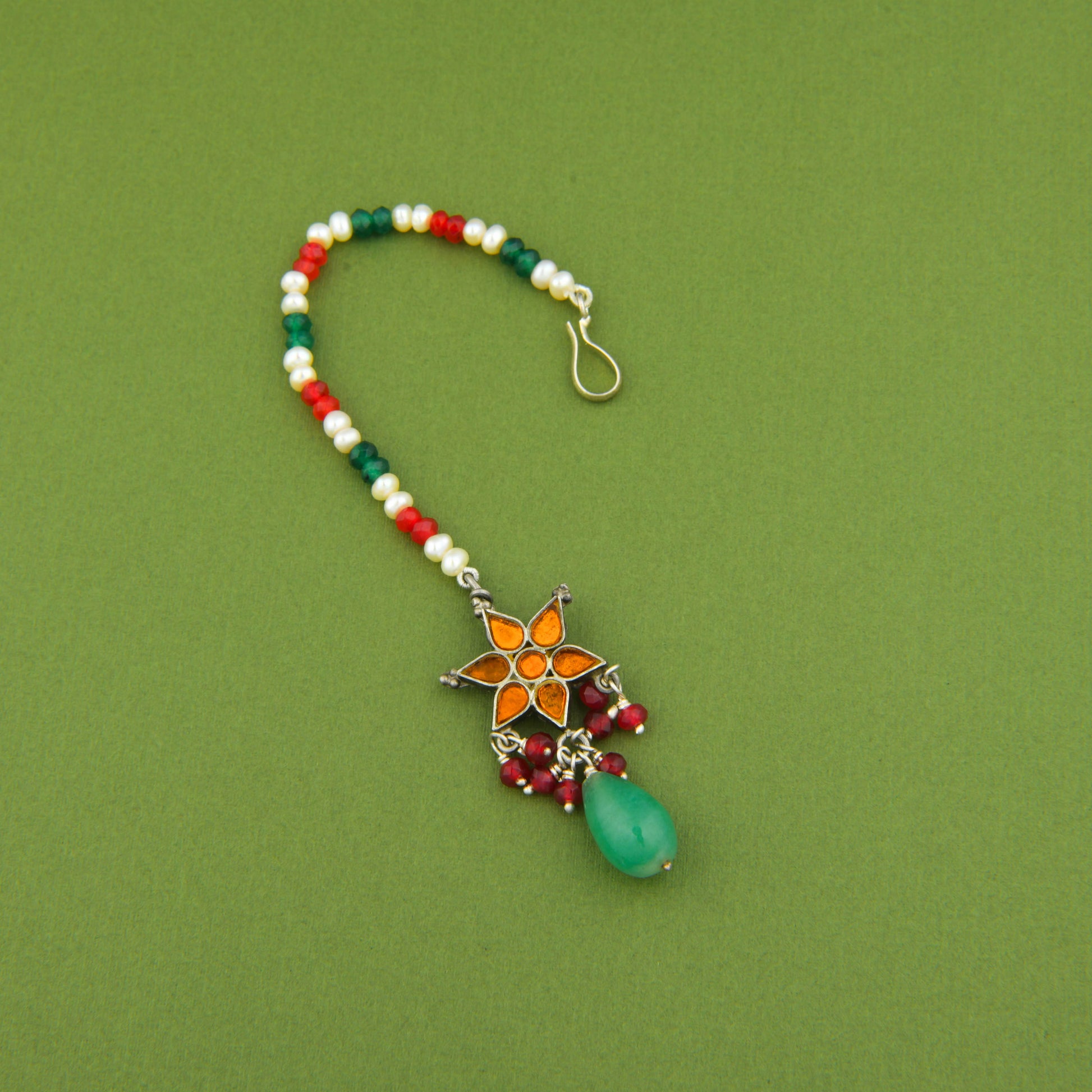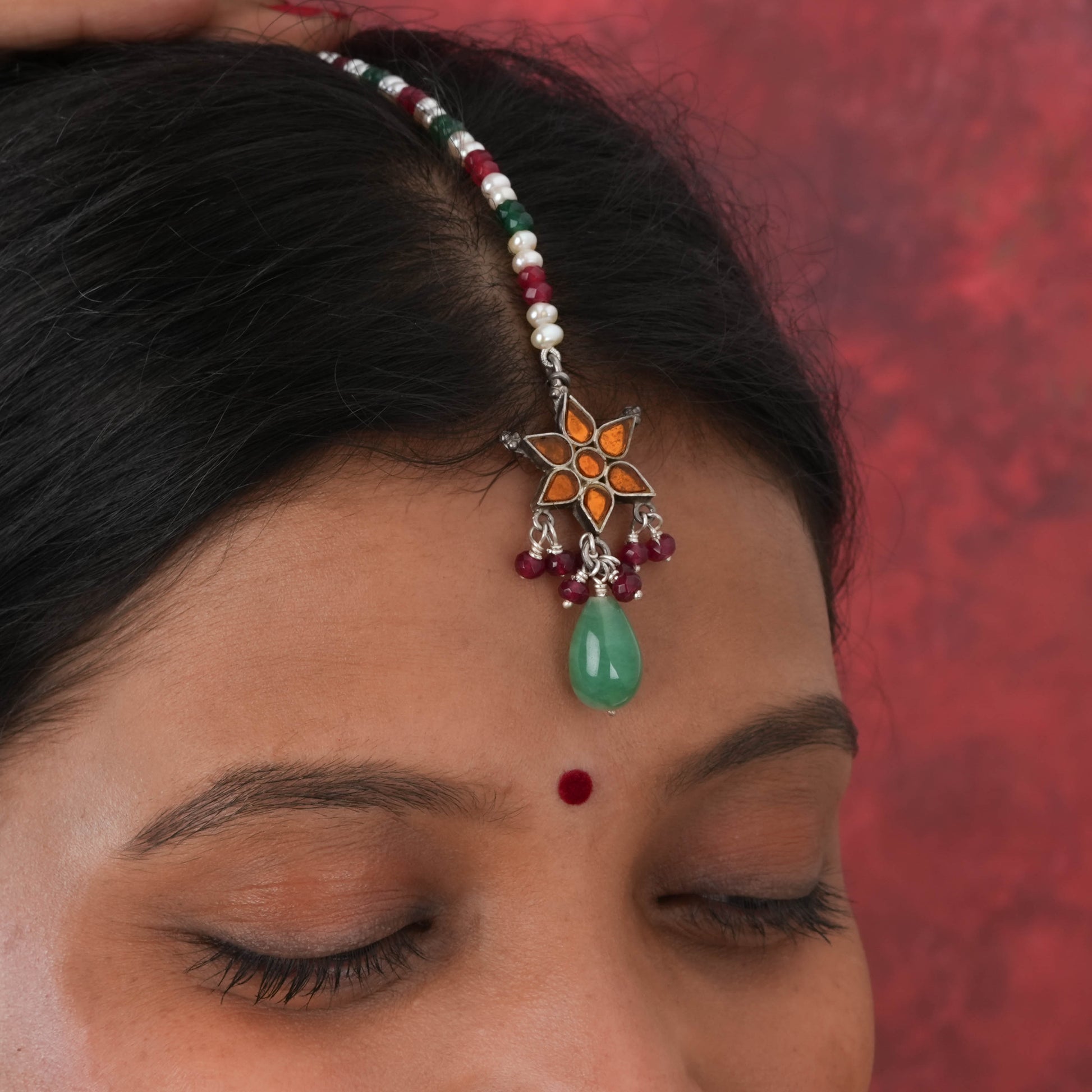 Madhu Chandrika Multi Stone Silver Maang Tikka