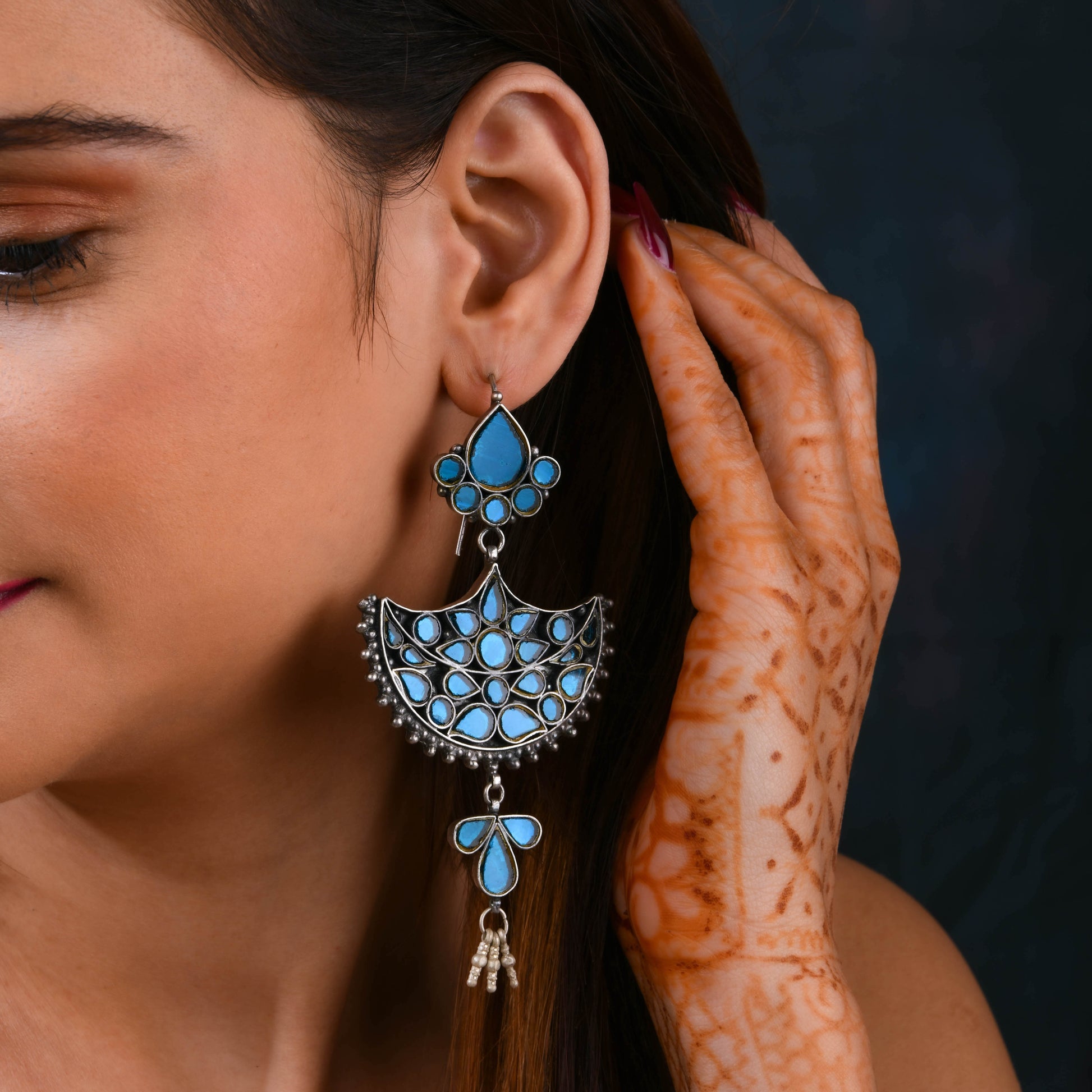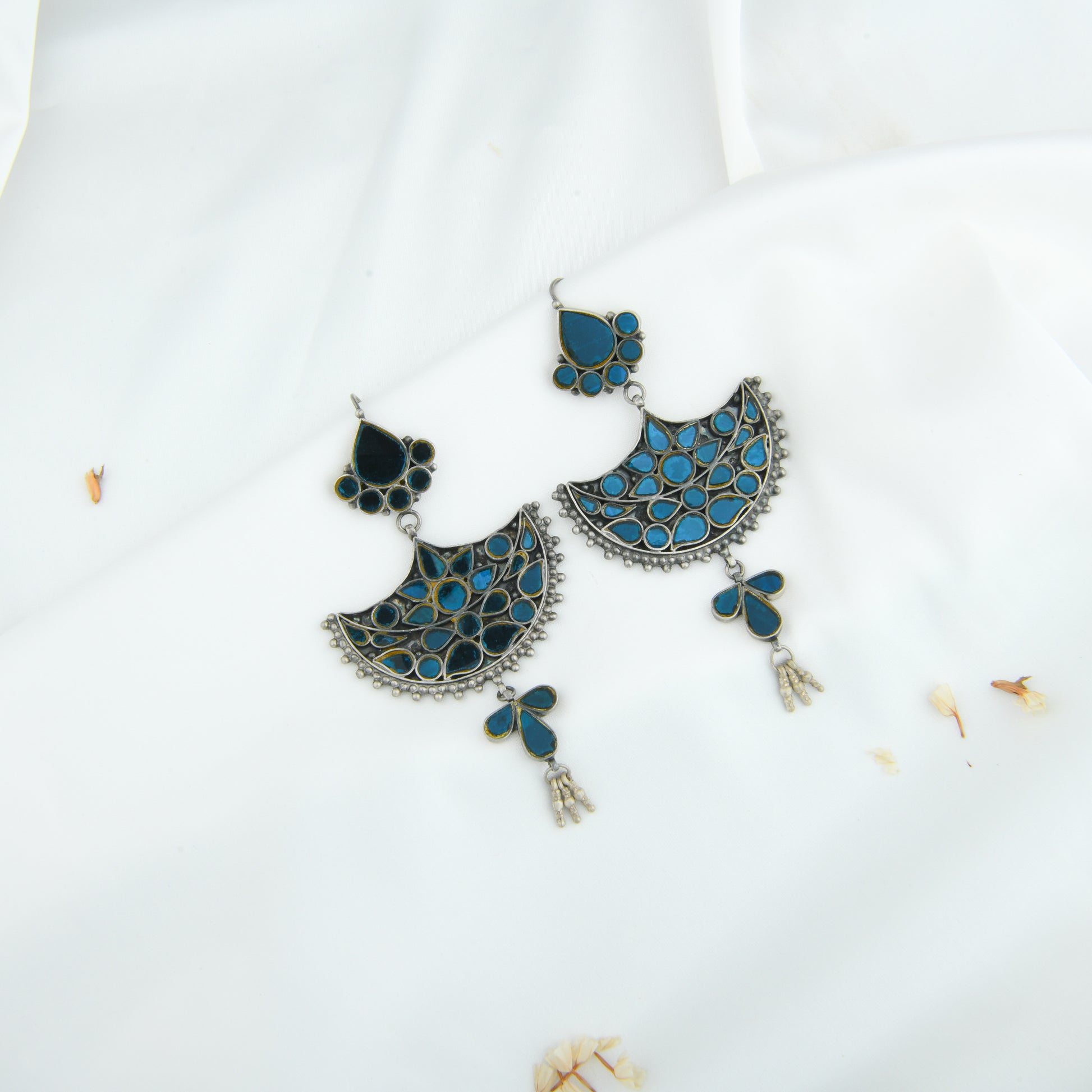 Madhu Chandrika Neela Aina Silver Earrings
