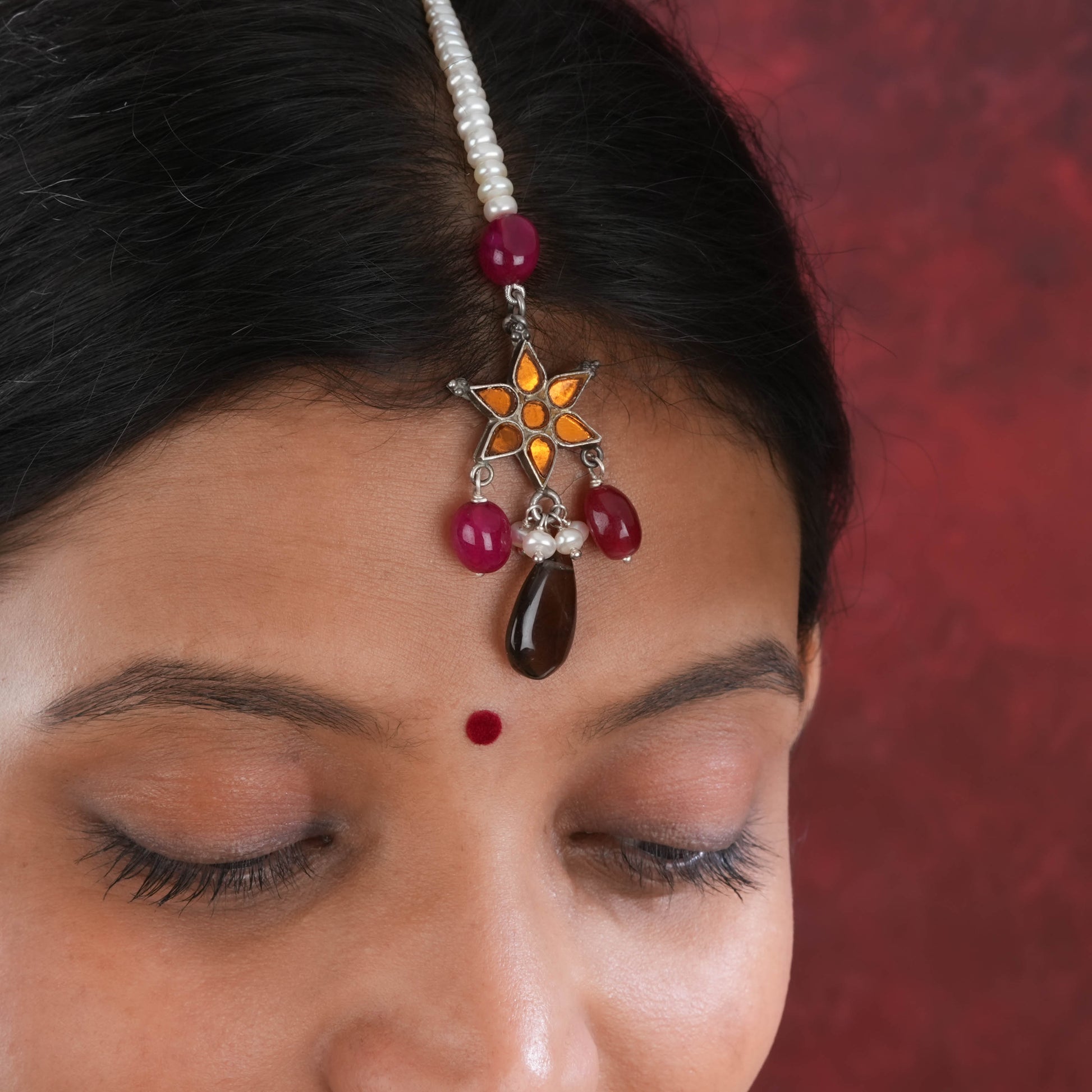 Price includes only Maang Tikka. Designed And Conceptualised At Totapari Studio. Minimal Yet Elegant.