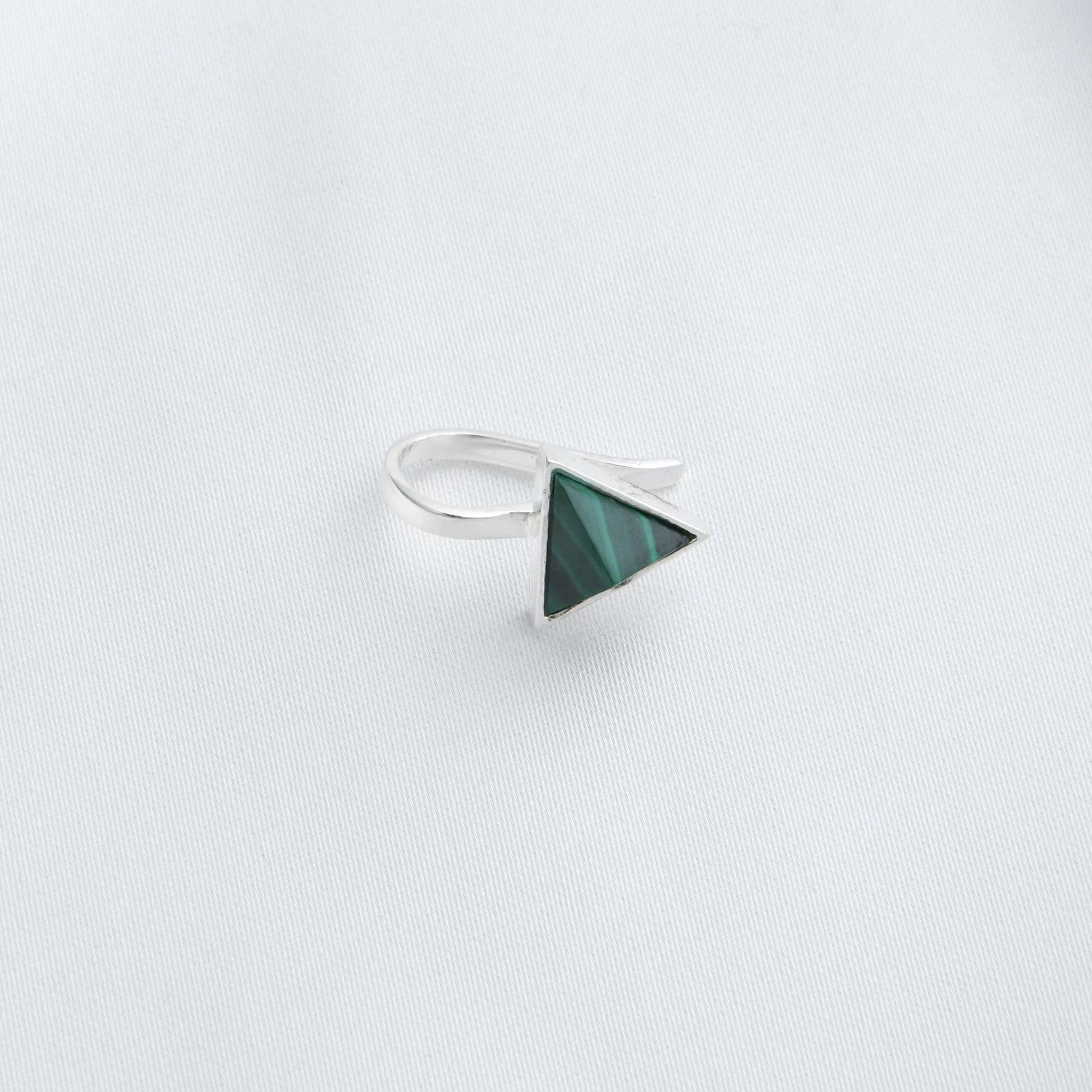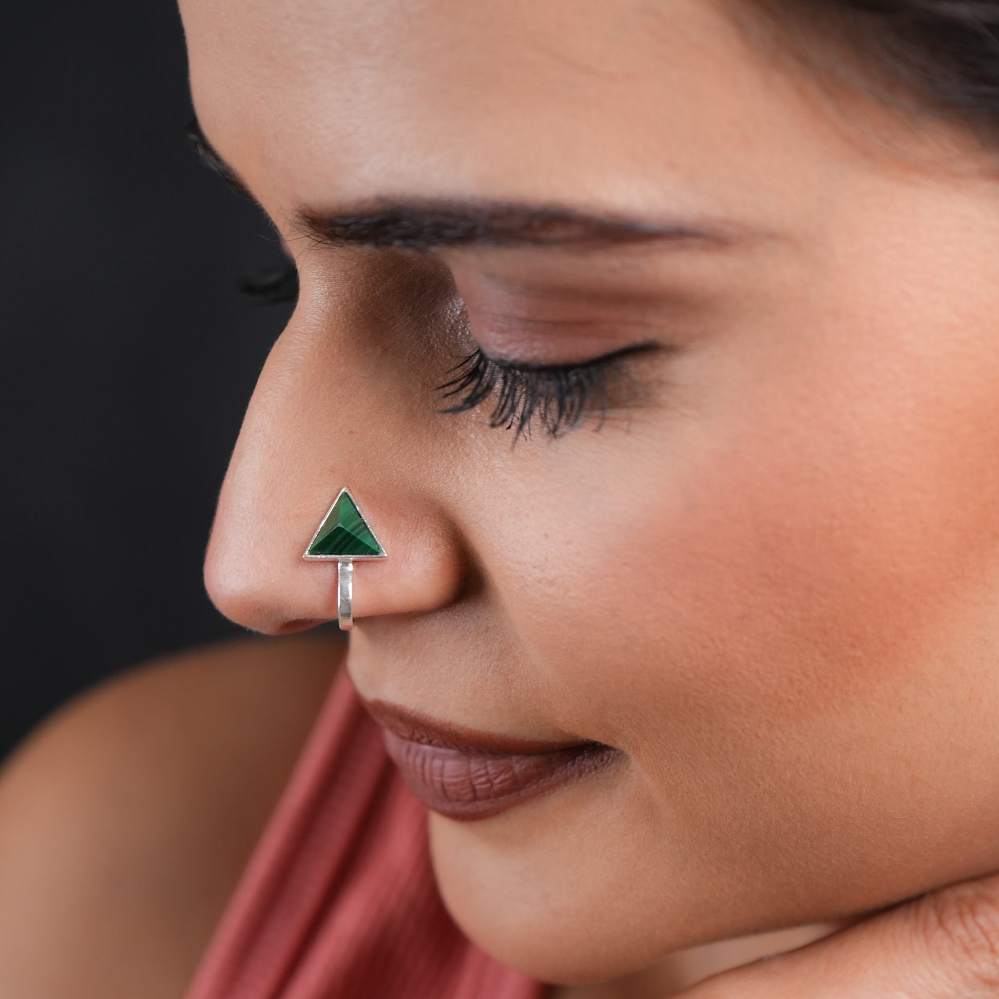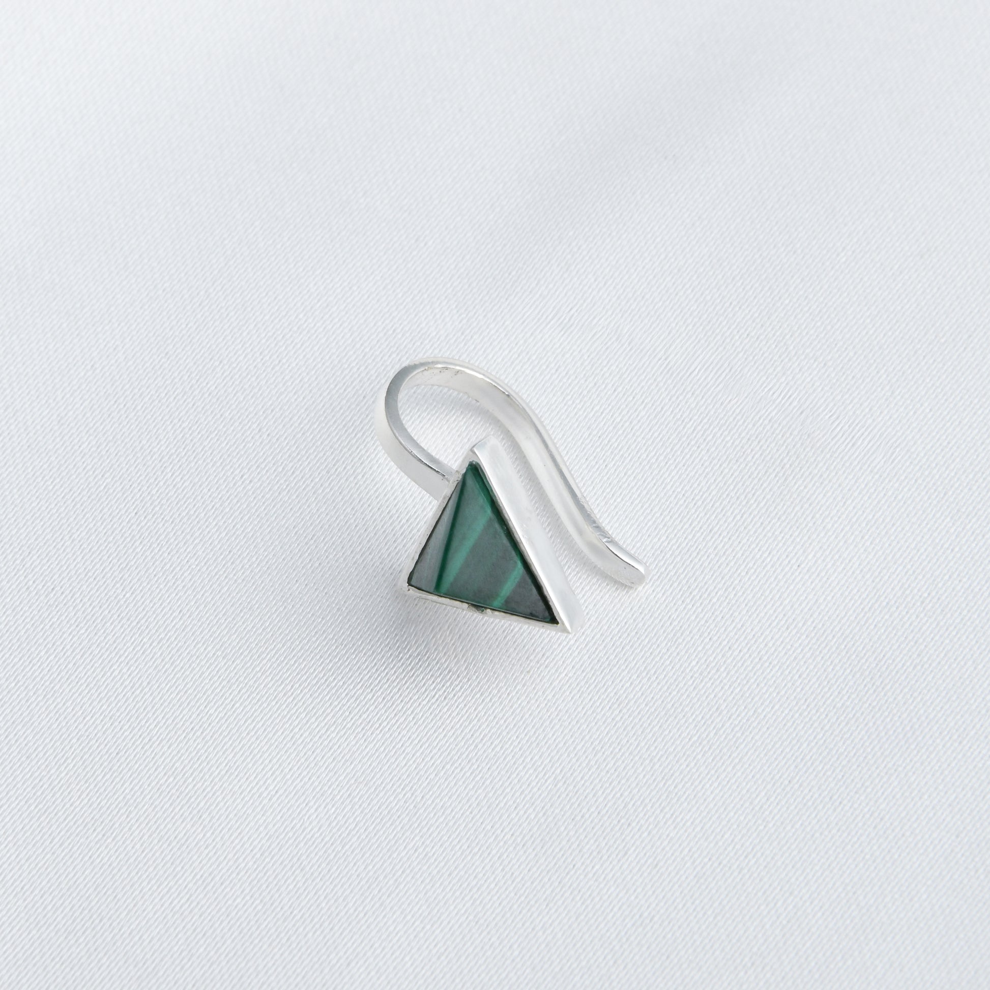 Malachite Triangle Silver Clip On Nose Pin